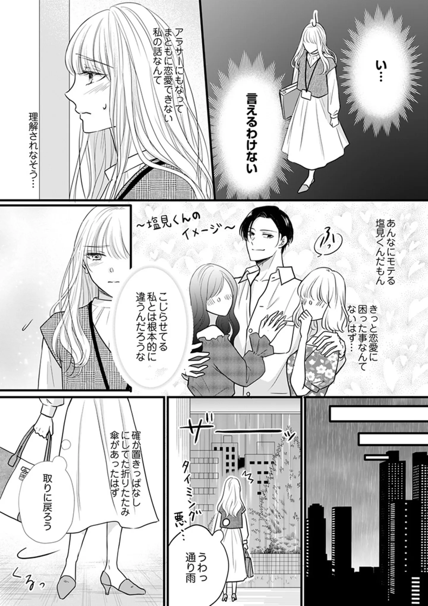 元彼が自分の悪口を言っている場に出くわし、空気が凍りつく!/塩見くんとはじめる恋のリハビリ② マンガ 公開日:2025/1/26 この連載を最初から読む→ <第3回に続く> 本作品をAmazon(電子)で読む > 本作品をRenta!で読む > 本作品をebookjapanで読む > 本作品をブックライブで読む > « 1 2 3 あわせて読みたい 【漫画】『塩見くんとはじめる恋のリハビリ』を読む モラハラ男にフラれ、恋がトラウマに… そんな彼女を救ったのは社内一のエリートとの「恋愛リハビリ」!? 煌びやかで華やかな世界の裏側で、もがき苦しむ遊女たち。どんな地獄でも負けない。自分らしく生き抜いてやる『仇討ち遊郭』 最新マンガと話題の書籍を無料で試し読み! 前の回 一覧 人気の連載 次の回 塩見くんとはじめる恋のリハビリ(1) (カフネ) Amazon 楽天(電子) コミック.jp コミックシーモア ebookjapan コミックフェスタ ピッコマ ブックライブ まんが王国 めちゃコミック U-NEXT LINEマンガ Renta! その他配信書店 塩見くんとはじめる恋のリハビリ(8) (カフネ) Amazon 楽天(電子)