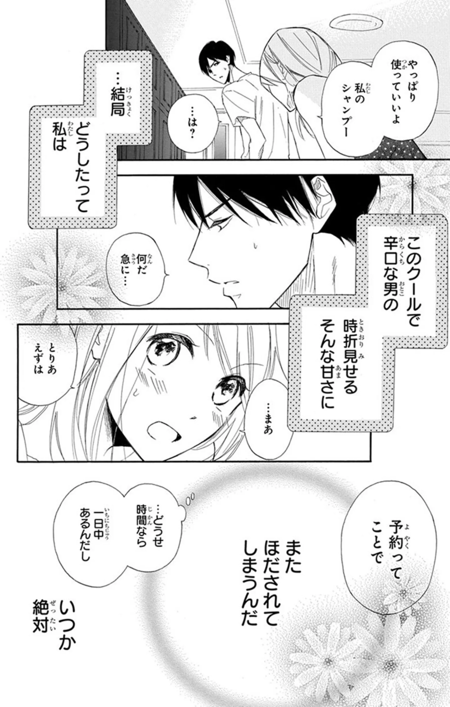 いつもクールな彼が見せた意外な本音。実は余裕がないのはお互い様だったようで…/ミントチョコレート⑥ マンガ 公開日:2025/2/10 この連載を最初から読む→ <第7回に続く> 本作品をAmazon(電子)で読む > 本作品をRenta!で読む > 本作品をebookjapanで読む > 本作品をBOOK☆WALKERで読む > « 1 2 3 あわせて読みたい 【漫画】『ミントチョコレート』を読む 【漫画】読んでるだけでお腹が鳴る! 美味しい「グルメ漫画」5作品を読む 【漫画】『午前3時の無法地帯』を読む 最新マンガと話題の書籍を無料で試し読み! 前の回 一覧 人気の連載 次の回 ミントチョコレート 1 (花とゆめコミックス) Amazon(電子) Amazon 楽天(電子) Renta! ebookjapan ブックライブ コミックシーモア DMMブックス U-NEXT ミントチョコレート【電子限定描き下ろし付き】 13 (花とゆめコミックススペシャル) Amazon(電子) Amazon 楽天(電子)
