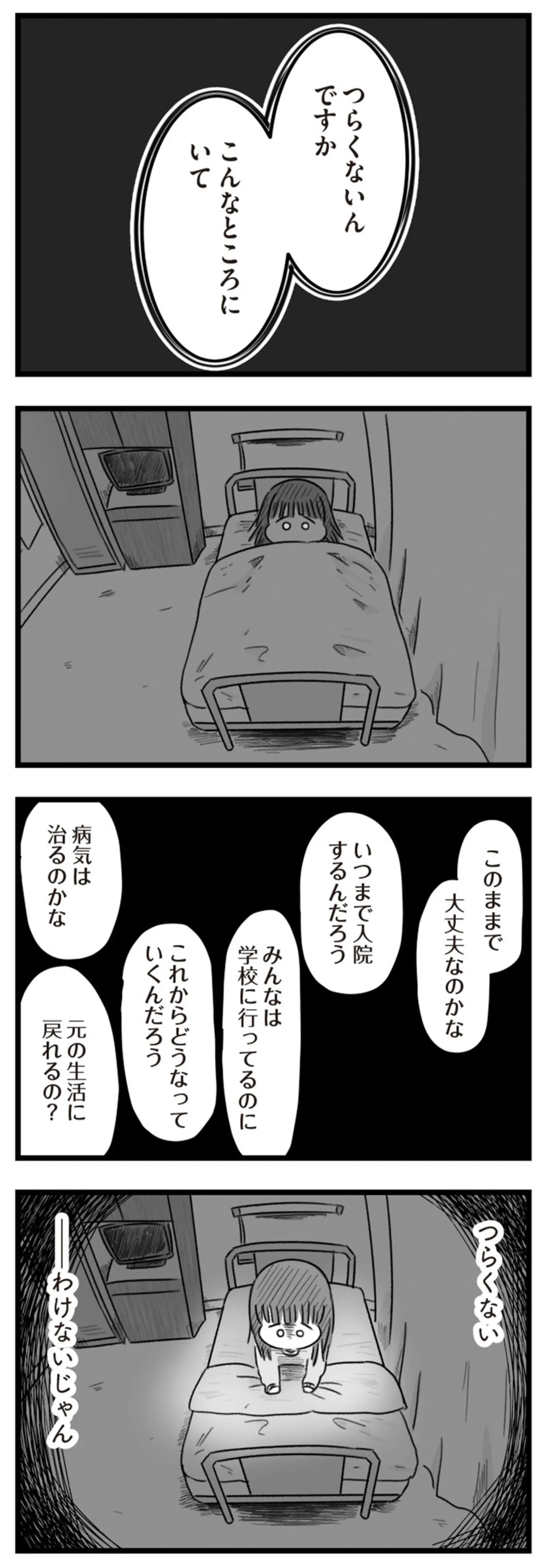代わり映えのない入院生活に不安を感じながらも、前進していることを実感する/精神科病棟の青春⑬ マンガ 公開日:2025/3/27 この連載を最初から読む→ 本作品をAmazon(電子)で読む > 本作品をRenta!で読む > >> 次のページに続く « 1 2 3 4 > あわせて読みたい 【漫画】『精神科病棟の青春 あるいは高校時代の特別な1年間について』を読む 【漫画】『20時過ぎの報告会』を読む 【漫画】『あのママが妬ましい 幸せ比べ、天国で地獄』を読む 最新マンガと話題の書籍を無料で試し読み! 前の回 一覧 人気の連載 次の回 精神科病棟の青春 あるいは高校時代の特別な1年間について (コミックエッセイ) Amazon(電子) Amazon 楽天(電子) Renta! ebookjapan ブックライブ コミックシーモア DMMブックス U-NEXT
