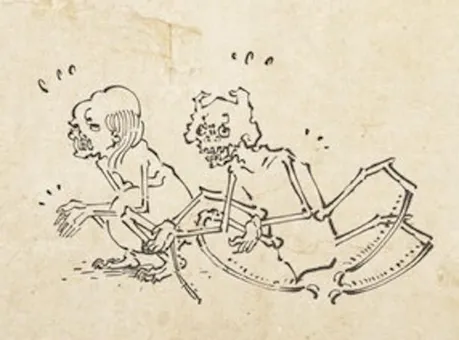 餓鬼とは、人間が生まれ変わりと死に変わりを果てしなく繰り返す世界・六道(ろくどう)の中にある「餓鬼道」に生まれた者のこと。飢えと渇きに苦しみ食べ物は食べられず骨と皮ばかりで、ギョロっとした目とぽっこり出たお腹でいつもお腹を空かせています。しかし本作に登場するのは非常に優しく、心の清い餓鬼。コーヒー豆を半日かけてすり鉢ですったり、ビニール袋を三角形に畳んだり、茶殻を撒いて掃き掃除をしたりと、丁寧な生活を送っています。おちゃめな餓鬼・ガッキーの暮らしが餓鬼草紙タッチのイラストで描かれた『丁寧な暮らしをする餓鬼 【参】』を、好評につき再掲載でお届けします!