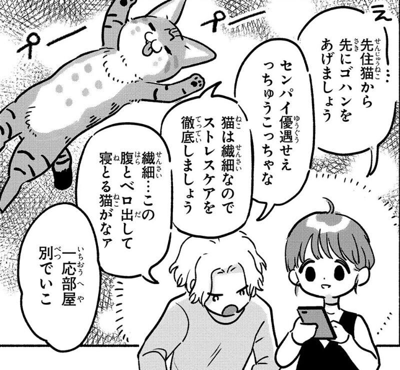 そして、ねこちゃんが飼い主の元にやってきてから程なくして、一緒に同居することになった犬のボンちゃんも熱烈なねこちゃん推し! ねこちゃんが近づいてくると激しくアピールするも、ねこちゃんは先住猫として上手に? あしらうのだった。