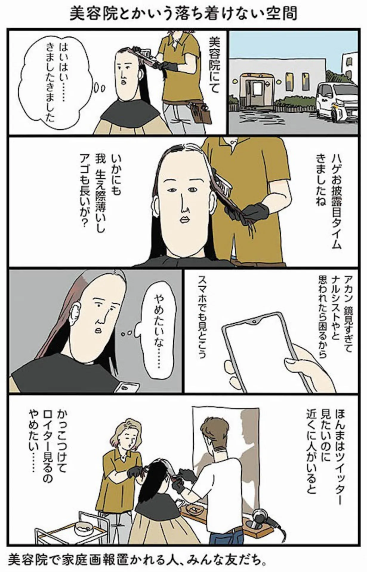 美容院という落ち着けない空間。鏡に映る自分の姿を見て思ったことは…?/フリースタイル家族 マンガ 公開日:2025/3/7 <第2回に続く> 本作品をAmazon(電子)で読む > 本作品をRenta!で読む > 本作品をebookjapanで読む > 本作品をBOOK☆WALKERで読む > « 1 2 あわせて読みたい 【漫画】『赤ちゃんに転生した話』を読む 【漫画】『フリースタイル家族』を読む 【漫画】『今日のぽよるし』を読む 最新マンガと話題の書籍を無料で試し読み! 前の回 一覧 人気の連載 次の回 フリースタイル家族 (コミックエッセイ) Amazon(電子) Amazon 楽天(電子) Renta! ebookjapan ブックライブ コミックシーモア DMMブックス U-NEXT