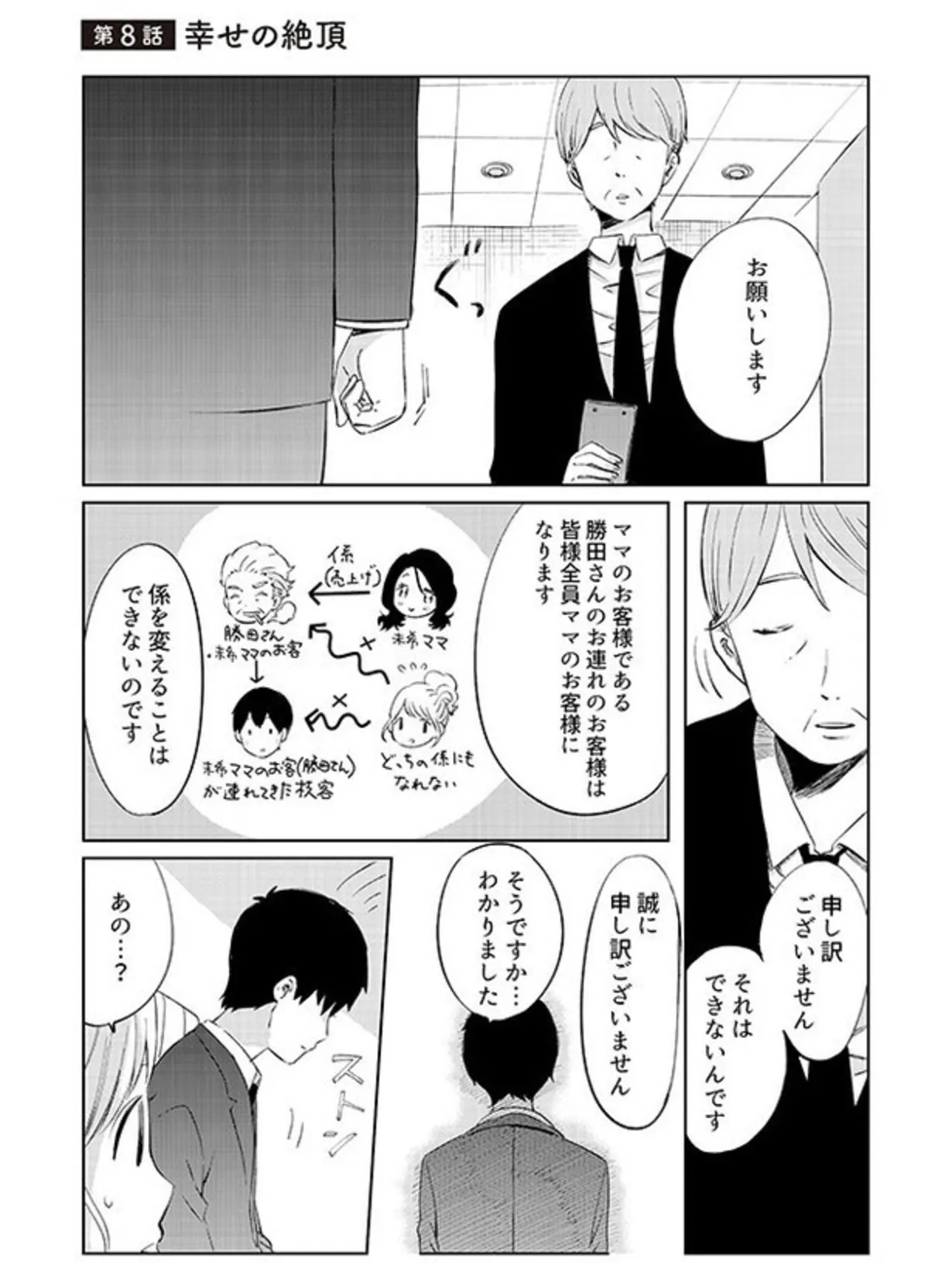 主人公もねと「彼氏くん」の出会いは、夜の銀座。ホステスだったもねの前に現れた彼氏くんの第一印象は「苦手」だったにもかかわらず、導かれるように2人は接近していく。交際から婚約、順調にいけば結婚するはずだった2人の関係に、ある日の突然の電話が原因で亀裂が入る。しかも浮気相手は1人ではなかった!? 信じていたのに…相手の信用はとたんに崩れ落ちていくが、心の整理もつかない。そして――彼女が手に握っていたものは包丁だった。自殺未遂、心中未遂、彼女は身も心もぼろぼろになっていく…。果たして2人の行く末は――?