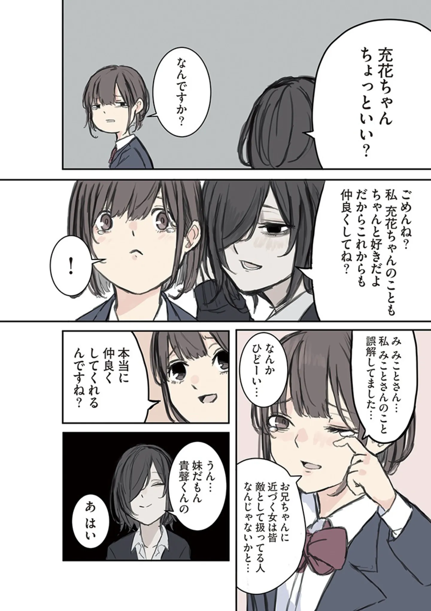 幼馴染の彼の妹が登場! 妹がだけが知っている兄の家の中での姿は…?/みことちゃんは嫌われたくない!1⑧ マンガ 公開日:2025/3/7 この連載を最初から読む→ <第9回に続く> 本作品をAmazon(電子)で読む > 本作品をRenta!で読む > 本作品をebookjapanで読む > 本作品をBOOK☆WALKERで読む > « 1 2 3 あわせて読みたい 【漫画】『みことちゃんは嫌われたくない!』を読む 【漫画】『きれいな世界』を読む 【漫画】『毎月庭つき大家つき』を読む 最新マンガと話題の書籍を無料で試し読み! 前の回 一覧 人気の連載 次の回 みことちゃんは嫌われたくない!【電子特典付き】 (コミックエッセイ) Amazon(電子) Amazon 楽天(電子) Renta! ebookjapan ブックライブ コミックシーモア DMMブックス U-NEXT みことちゃんは嫌われたくない!2【電子特典付き】 (コミックエッセイ) Amazon(電子) Amazon 楽天(電子) みことちゃんは嫌われたくない!3 (コミックエッセイ) Amazon(電子) Amazon 楽天(電子)