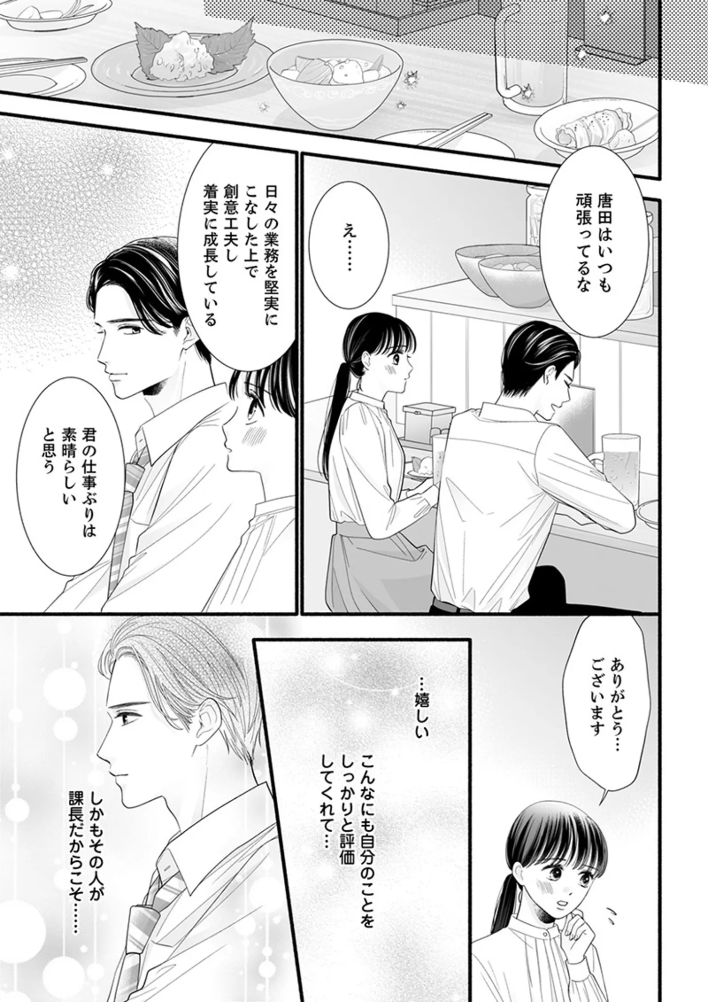 いつも厳しいイケメン課長が頑張り屋の部下にご褒美を提案! 部下が望むものは…/塩系上司が甘すぎる③ マンガ 公開日:2025/2/28 この連載を最初から読む→ 『塩系上司が甘すぎる』(泉条ちえり:漫画、ガジュマル:原作、風華弓弦:シナリオ/DPNブックス)第3回【全18回】 3カ月前、部署を立て直すために30歳の若手課長・天野聖実(あまのさとみ)がやってきた。仕事ができて英語も堪能。しかもイケメン。パーフェクトな課長だが、全ての社員に対して塩対応。指示出しも短い言葉で用件のみ。愛嬌のかけらもないから部署ではちょっと浮き気味。そんな「塩系上司」が、なぜか地味でまじめが取り柄の私にだけ優しい…。今日もみんなに隠れてこっそり甘やかされています! 塩系上司と真面目な部下の胸キュンラブストーリー『塩系上司が甘すぎる』をお楽しみください! 【30日間無料】Amazonの読み放題をチェック > 本作品をAmazon(電子)で読む > 本作品をRenta!で読む > >> 次のページに続く 1 2 3 4 > あわせて読みたい 塩対応の上司が、自分だけに見せてくれる甘い顔… ひたむきに頑張る人に癒しをくれるマンガ『塩系上司が甘すぎる』 【漫画】『塩系上司が甘すぎる』を読む 虐げられた少女はクールで優しいスパダリ御曹司に溺愛される!? 艶やかな恋模様を描くレトロモダンなラブロマンス 最新マンガと話題の書籍を無料で試し読み! 前の回 一覧 人気の連載 次の回 塩系上司が甘すぎる(1) (カフネ) Amazon 楽天(電子) コミック.jp アクセスBOOKS コミックシーモア Abemaマンガ ebookjapan dブック ブックライブ まんが王国 めちゃコミック LINEマンガ Renta! その他配信書店 塩系上司が甘すぎる(13) (カフネ) Amazon 楽天(電子)