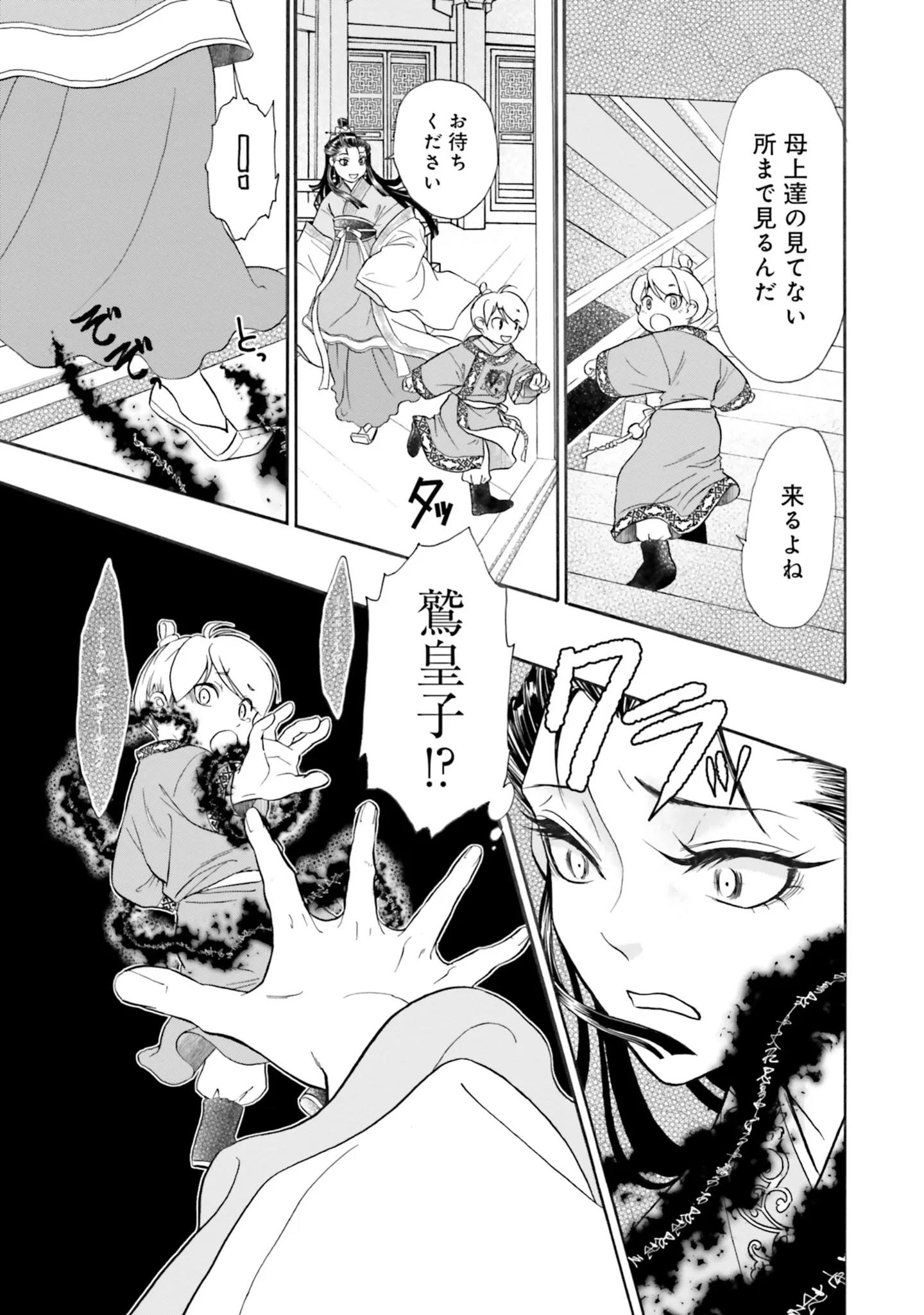 楼へ入った皇子と侍女に、見えない何かがまとわりつく。皇子だけは助けなきゃ!/目が覚めると百年後の後宮でした③ マンガ 公開日:2025/4/19 この連載を最初から読む→ 本作品をAmazon(電子)で読む > 本作品をRenta!で読む > >> 次のページに続く « 1 2 3 > あわせて読みたい 【漫画】『目が覚めると百年後の後宮でした 後宮侍女紅玉』を読む 【漫画】『ふつつかな悪女ではございますが』を読む 【漫画】『こちら後宮日陰の占い部屋 一 執筆中につき後宮ではお静かに』を読む 最新マンガと話題の書籍を無料で試し読み! 前の回 一覧 人気の連載 次の回 目が覚めると百年後の後宮でした 後宮侍女紅玉 1 (FLOS COMIC) Amazon(電子) Amazon 楽天(電子) Renta! ebookjapan ブックライブ コミックシーモア DMMブックス U-NEXT 目が覚めると百年後の後宮でした 後宮侍女紅玉 2 (FLOS COMIC) Amazon(電子) Amazon 楽天(電子) 目が覚めると百年後の後宮でした 後宮侍女紅玉 3 (FLOS COMIC) Amazon(電子) Amazon 楽天(電子)