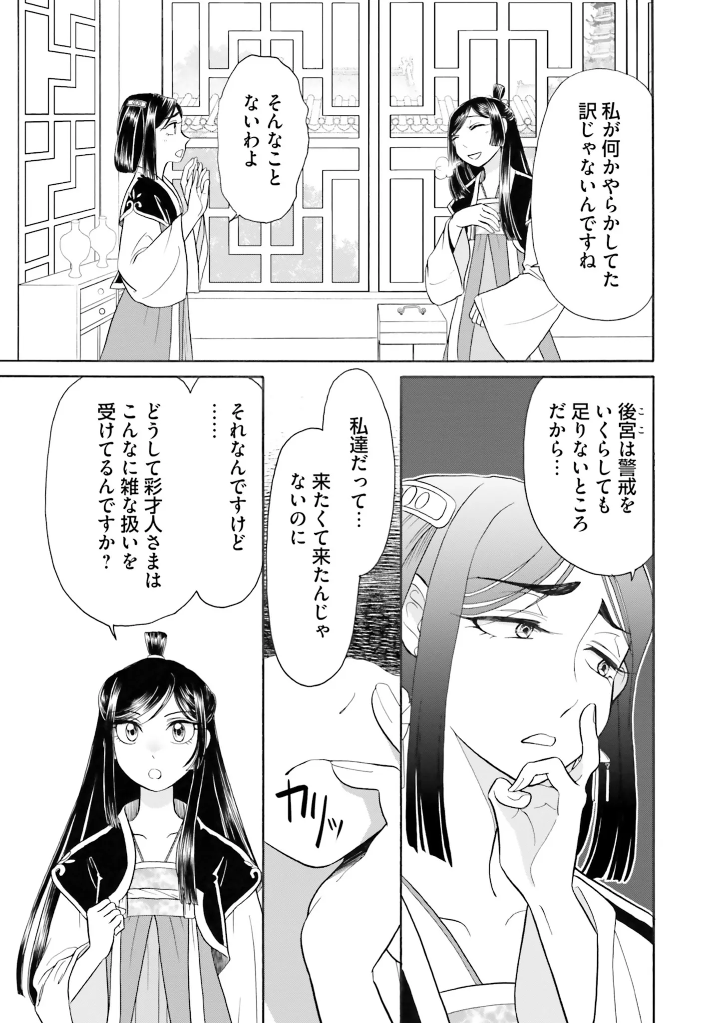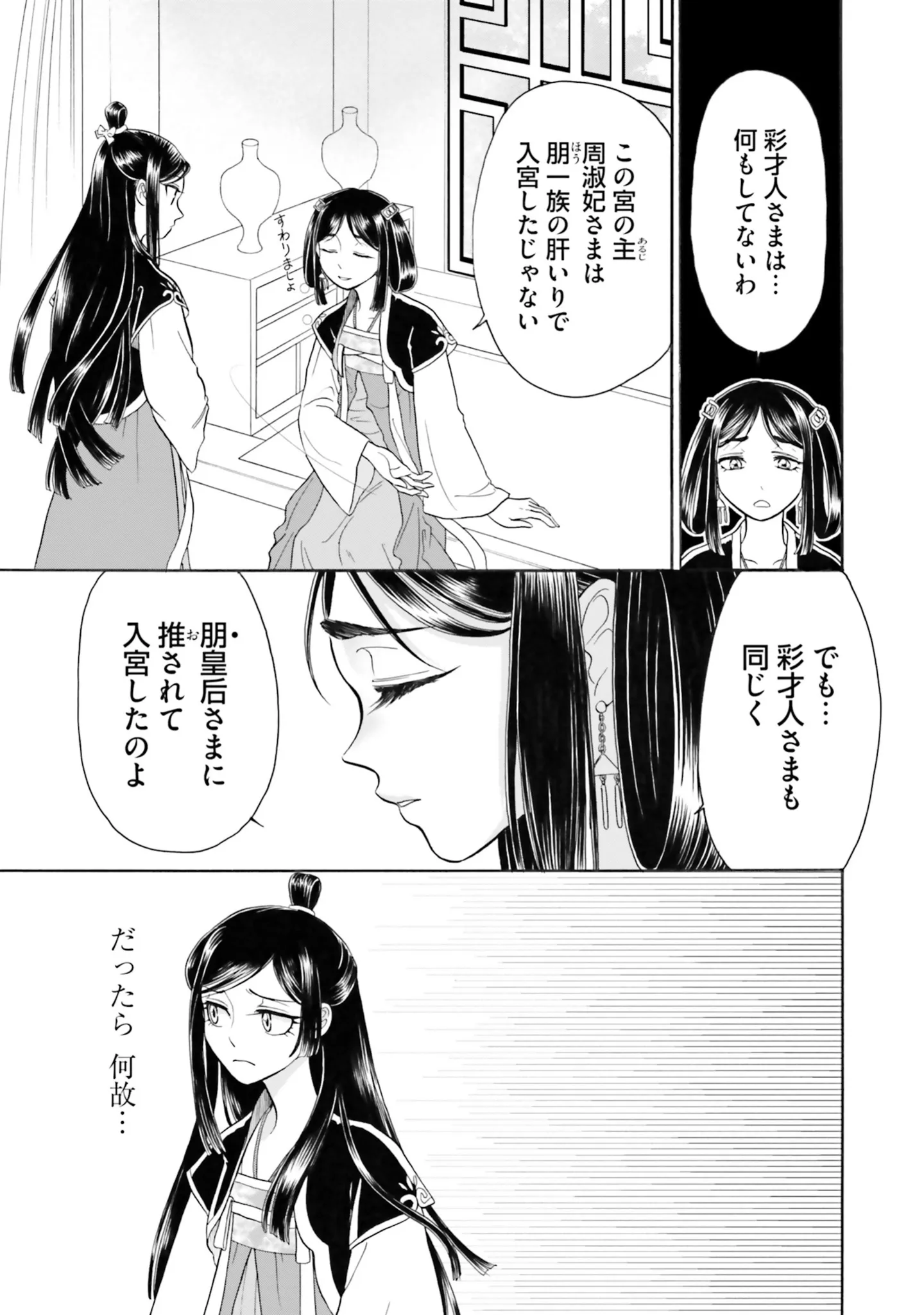 位の低い妃が上級妃から目の敵にされる理由は? 先輩侍女が語る、ある上級妃との因縁/目が覚めると百年後の後宮でした⑩ マンガ 公開日:2025/4/26 この連載を最初から読む→ 本作品をAmazon(電子)で読む > 本作品をRenta!で読む > >> 次のページに続く « 1 2 3 > あわせて読みたい 【漫画】『目が覚めると百年後の後宮でした 後宮侍女紅玉』を読む 【漫画】『メンタル強め美女白川さん5』を読む 【漫画】『執筆中につき後宮ではお静かに 愛書妃の朱国宮廷抄』を読む 最新マンガと話題の書籍を無料で試し読み! 前の回 一覧 人気の連載 次の回 目が覚めると百年後の後宮でした 後宮侍女紅玉 1 (FLOS COMIC) Amazon(電子) Amazon 楽天(電子) Renta! ebookjapan ブックライブ コミックシーモア DMMブックス U-NEXT 目が覚めると百年後の後宮でした 後宮侍女紅玉 2 (FLOS COMIC) Amazon(電子) Amazon 楽天(電子) 目が覚めると百年後の後宮でした 後宮侍女紅玉 3 (FLOS COMIC) Amazon(電子) Amazon 楽天(電子)
