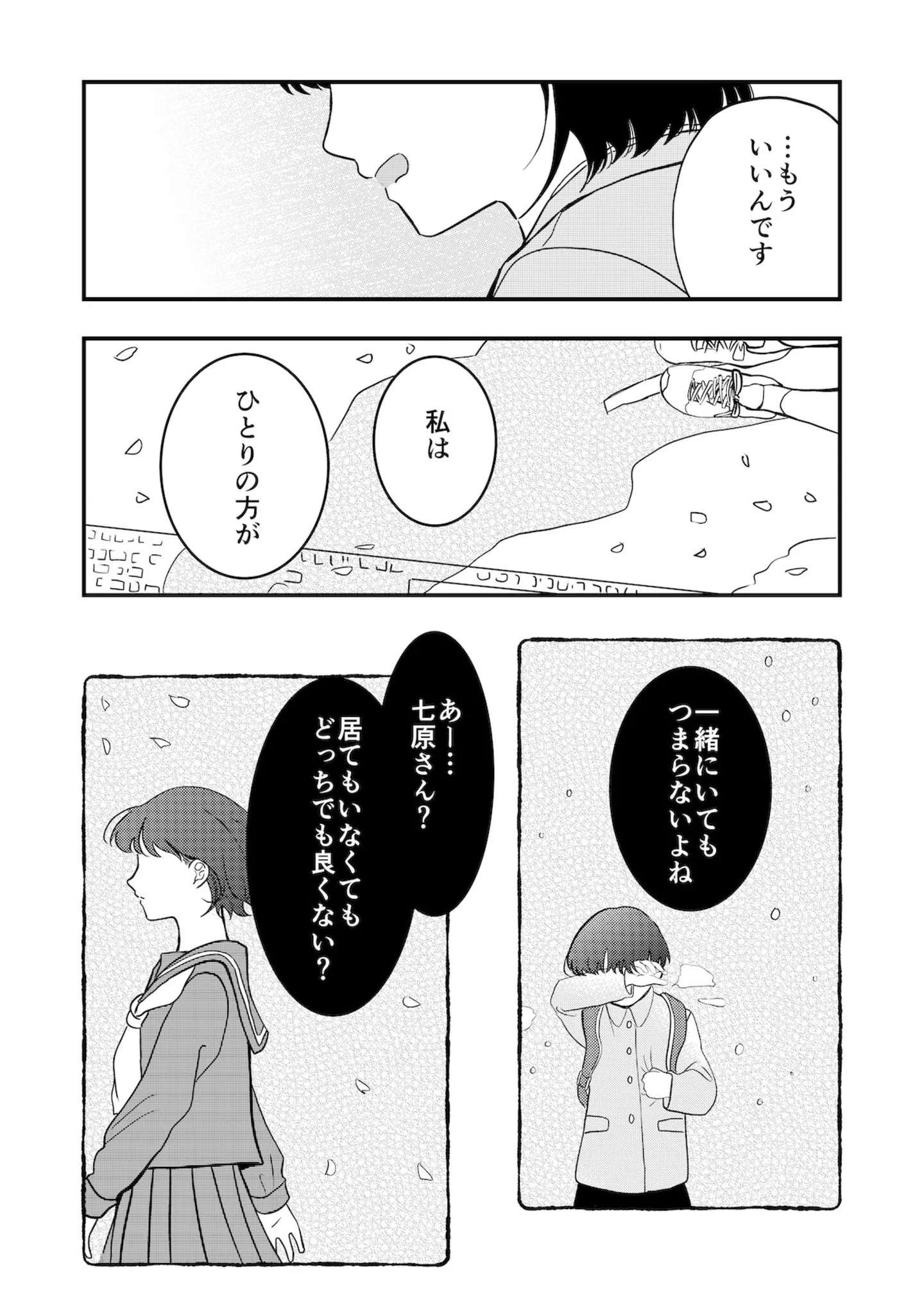 強面男子からの拒絶に傷つき、関係を絶とうとする女子高生。「一緒にいたい」と引き止められて…?/ひとりとひとりで恋になる⑥ マンガ 公開日:2025/3/25 この連載を最初から読む→ >> 次のページに続く « 1 2 3 4 > あわせて読みたい 友だちがいない真面目な女子高生。屋上でお弁当を食べようとすると、ヤンキーに絡まれて大ピンチ!?/ひとりとひとりで恋になる① 不良っぽい見た目だけど実は良い人?並んでお昼を食べて分かった、不器用な優しさとぬくもり/ひとりとひとりで恋になる② 教師から喫煙を疑われるヤンキー。勇気を出して庇ったら、後ろから抱き着かれ…!?/ひとりとひとりで恋になる③ 屋上で出会った男子との連絡先交換。何気ない反応をもっと見たいと思うのは恋のはじまり…?/ひとりとひとりで恋になる④ 仲良くなったはずの強面男子からの拒絶。友だちだと思っていたのは私だけ…?/ひとりとひとりで恋になる⑤ 前の回 一覧 人気の連載 次の回