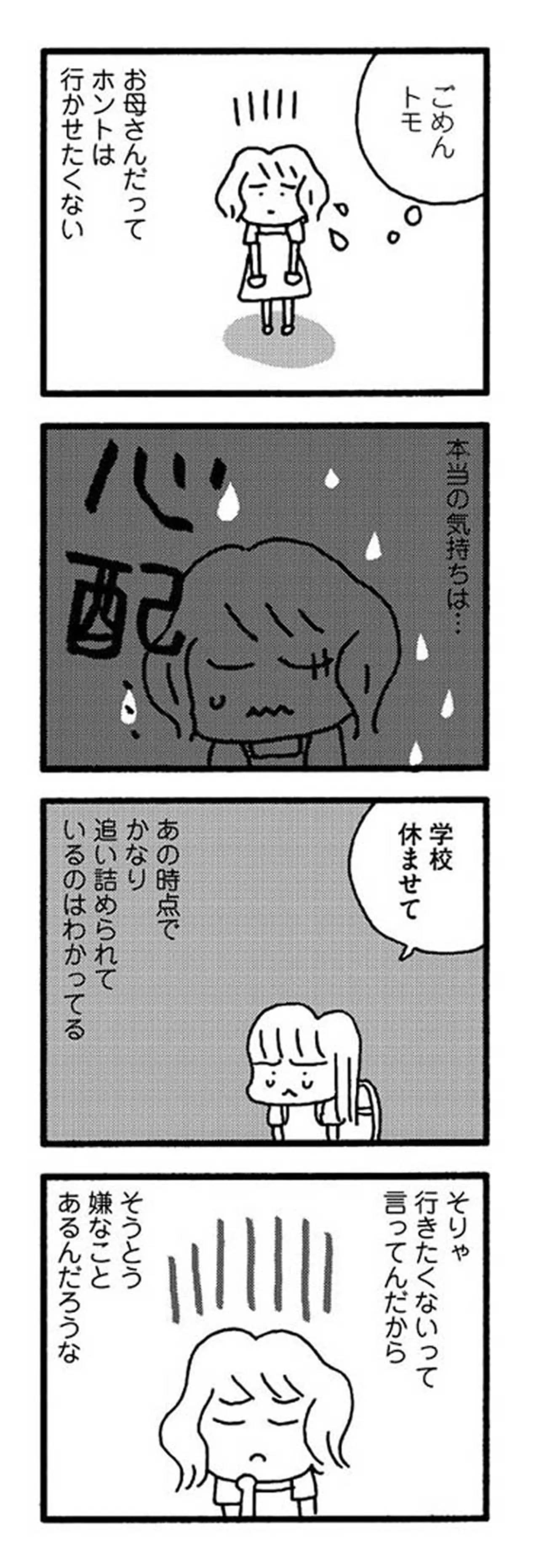 学校に行かせるか否か。担任を信じて不登校の娘を学校へ送り出す/娘が学校に行きません 親子で迷った198日間⑤ マンガ 公開日:2025/4/22 この連載を最初から読む→ <第6回に続く> 本作品をAmazon(電子)で読む > 本作品をRenta!で読む > 本作品をebookjapanで読む > 本作品をBOOK☆WALKERで読む > « 1 2 3 あわせて読みたい 【漫画】『娘が学校に行きません 親子で迷った198日間』を読む 【漫画】『拾い猫のモチャ』を読む 【漫画】『よいたん3歳、ときどき先輩。』を読む 最新マンガと話題の書籍を無料で試し読み! 前の回 一覧 人気の連載 次の回 娘が学校に行きません 親子で迷った198日間 (コミックエッセイ) Amazon(電子) Amazon 楽天(電子) Renta! ebookjapan ブックライブ コミックシーモア DMMブックス U-NEXT