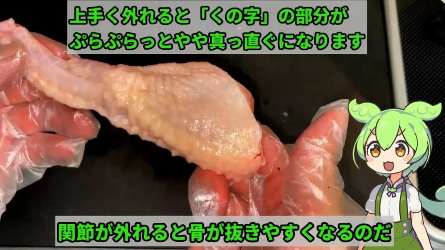 まず手羽先の骨を抜きます。折り曲がっている部分を上下に曲げ、関節をはずします。