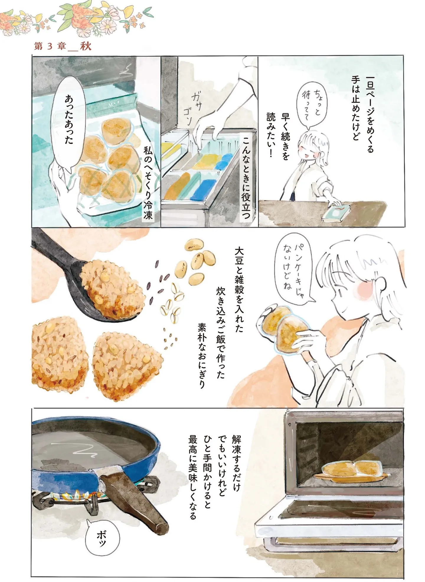 冷凍おにぎりにひと手間加えた大豆と雑穀の焼きおにぎりで、読書の秋の簡単ランチ/季節が好きなわたしとマダム⑦ マンガ 公開日:2025/6/2 この連載を最初から読む→ 本作品をAmazon(電子)で読む > 本作品をRenta!で読む > >> 次のページに続く « 1 2 3 > あわせて読みたい 【漫画】『季節が好きなわたしとマダム』を読む 【漫画】『犬と猫どっちも飼ってると毎日たのしい』を読む 【漫画】『お母さんは認知症、お父さんは老人ホーム 介護ど真ん中!親のトリセツ』を読む 最新マンガと話題の書籍を無料で試し読み! 前の回 一覧 人気の連載 次の回 季節が好きなわたしとマダム (コミックエッセイ) Amazon(電子) Amazon 楽天(電子) Renta! ebookjapan ブックライブ コミックシーモア DMMブックス U-NEXT