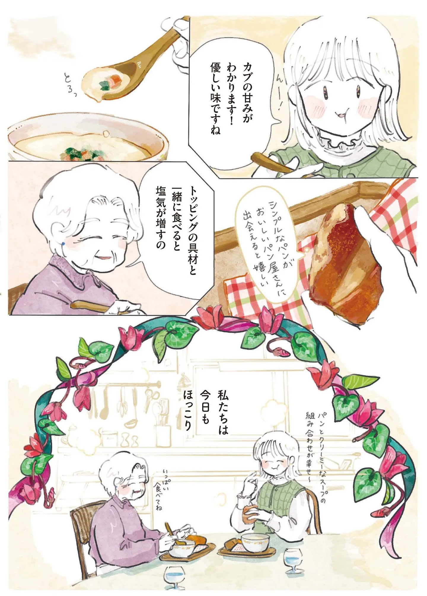 冬のランチに、ほっこりするカブのポタージュスープ。シンプルなパンと相性バッチリ/季節が好きなわたしとマダム⑩ マンガ 公開日:2025/6/5 この連載を最初から読む→ <第11回に続く> 本作品をAmazon(電子)で読む > 本作品をRenta!で読む > 本作品をebookjapanで読む > 本作品をBOOK☆WALKERで読む > « 1 2 3 あわせて読みたい 【漫画】『季節が好きなわたしとマダム』を読む 【漫画】『障がい者専門風俗嬢のわたし』を読む 【漫画】『子育てしたら白目になりました』を読む 最新マンガと話題の書籍を無料で試し読み! 前の回 一覧 人気の連載 次の回 季節が好きなわたしとマダム (コミックエッセイ) Amazon(電子) Amazon 楽天(電子) Renta! ebookjapan ブックライブ コミックシーモア DMMブックス U-NEXT