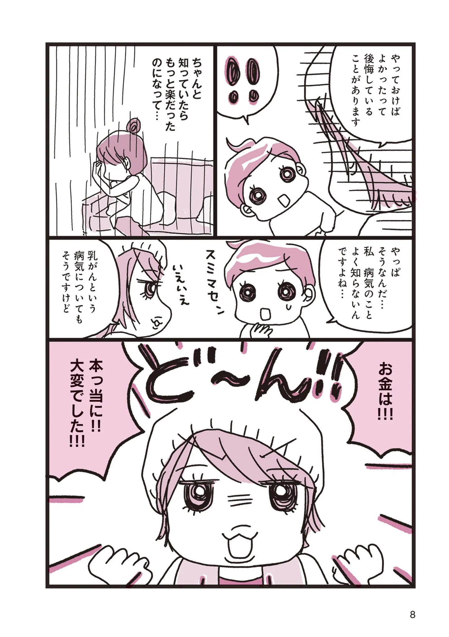 乳がん、いくら備えれば大丈夫? 経験者が語るお金の後悔/乳がんにまつわるお金の話 マンガ 公開日:2025/5/17 <第2回に続く> 本作品をAmazon(電子)で読む > 本作品をRenta!で読む > 本作品をebookjapanで読む > 本作品をBOOK☆WALKERで読む > « 1 2 あわせて読みたい 【漫画】『SNS狂の女〜自己顕示欲のバケモノ〜』を読む 【漫画】『認知症が見る世界 現役ヘルパーが描く介護現場の真実』を読む 【漫画】『破天荒な妻に今日も振り回されています』を読む 【漫画】『20代、親を看取る。』を読む 【漫画】『小学生エムモトえむみの勝手きままライフ』を読む 最新マンガと話題の書籍を無料で試し読み! 前の回 一覧 人気の連載 次の回 乳がんにまつわるお金の話 Amazon(電子) Amazon 楽天(電子) Renta! ebookjapan ブックライブ コミックシーモア DMMブックス U-NEXT