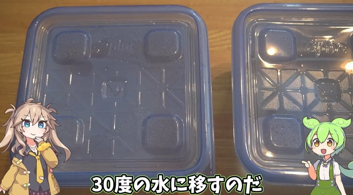 続いて、30度の水に移して同じように2分つけておきます。