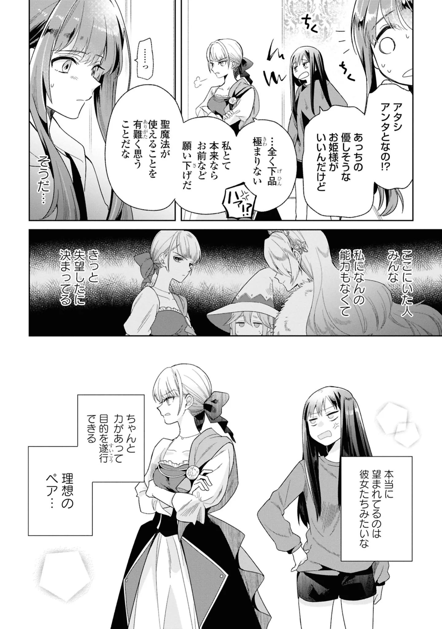 庇ってくれた王女とペアになった聖女。力不足を気にして、役目を断ろうとするが…/無力聖女と無能王女④ マンガ 公開日:2025/6/12 この連載を最初から読む→ ©玉崎たま/一迅社 本作品をAmazon(電子)で読む > 本作品をRenta!で読む > >> 次のページに続く « 1 2 3 > あわせて読みたい 【漫画】『無力聖女と無能王女~魔力ゼロで召喚された聖女の異世界救国記~』を読む 【漫画】『拾い猫のモチャ』を読む 【漫画】『恋愛経験ほぼゼロ!の僕がマッチングアプリで幸せを掴むまで 』を読む 最新マンガと話題の書籍を無料で試し読み! 前の回 一覧 人気の連載 次の回 無力聖女と無能王女~魔力ゼロで召喚された聖女の異世界救国記~: 1【イラスト特典付】 (百合姫コミックス) Amazon(電子) Amazon 楽天(電子) Renta! ebookjapan ブックライブ コミックシーモア DMMブックス U-NEXT 無力聖女と無能王女~魔力ゼロで召喚された聖女の異世界救国記~: 2【イラスト特典付】 (百合姫コミックス) Amazon(電子) Amazon 楽天(電子)