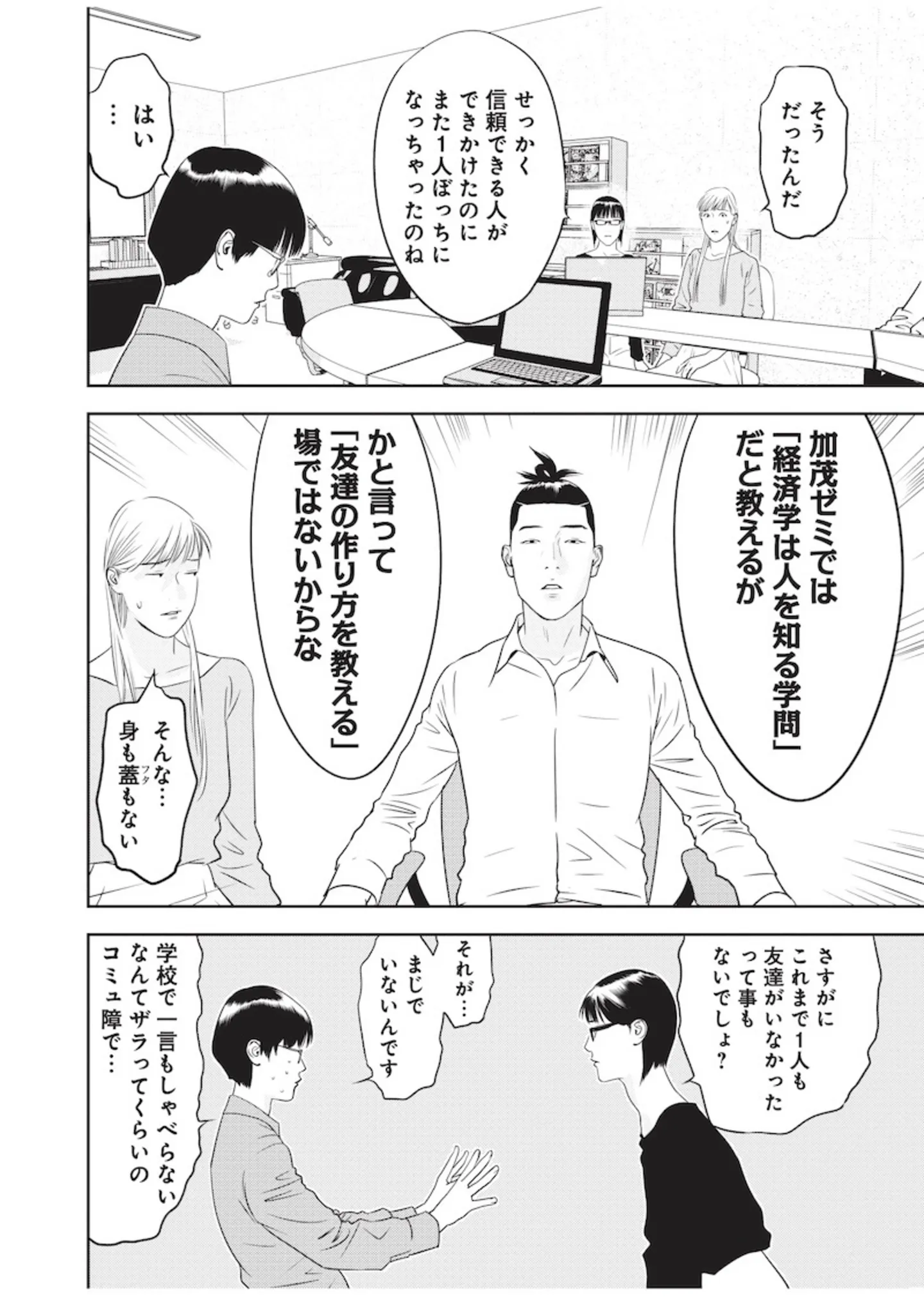 天才だがド変人な教授の不人気ゼミに新メンバー加入。彼がこのゼミを選んだ理由は?/カモのネギには毒がある① マンガ 公開日:2025/6/18 ©甲斐谷忍プロダクツ・夏原武/集英社 <第2回に続く> 本作品をAmazon(電子)で読む > 本作品をRenta!で読む > 本作品をebookjapanで読む > 本作品をBOOK☆WALKERで読む > « 1 2 3 あわせて読みたい マッチングアプリ、闇バイト…誰もがカモられる現代社会の闇を変人経済学教授が暴く! 私たちの身を守る術が満載の痛快経済エンタメコミック『カモのネギには毒がある』【書評】 【漫画】『カモのネギには毒がある 加茂教授の人間経済学講義』を読む 【漫画】『SNS狂の女〜自己顕示欲のバケモノ〜』を読む 最新マンガと話題の書籍を無料で試し読み! 前の回 一覧 人気の連載 次の回 カモのネギには毒がある 加茂教授の人間経済学講義 10 (ヤングジャンプコミックスDIGITAL) Amazon(電子) Amazon 楽天(電子) Renta! ebookjapan ブックライブ コミックシーモア DMMブックス U-NEXT カモのネギには毒がある 加茂教授の人間経済学講義 1 (ヤングジャンプコミックスDIGITAL) Amazon(電子) Amazon 楽天(電子) Renta! ebookjapan ブックライブ コミックシーモア DMMブックス U-NEXT カモのネギには毒がある 加茂教授の人間経済学講義 11 (ヤングジャンプコミックスDIGITAL) Amazon(電子) Amazon 楽天(電子)