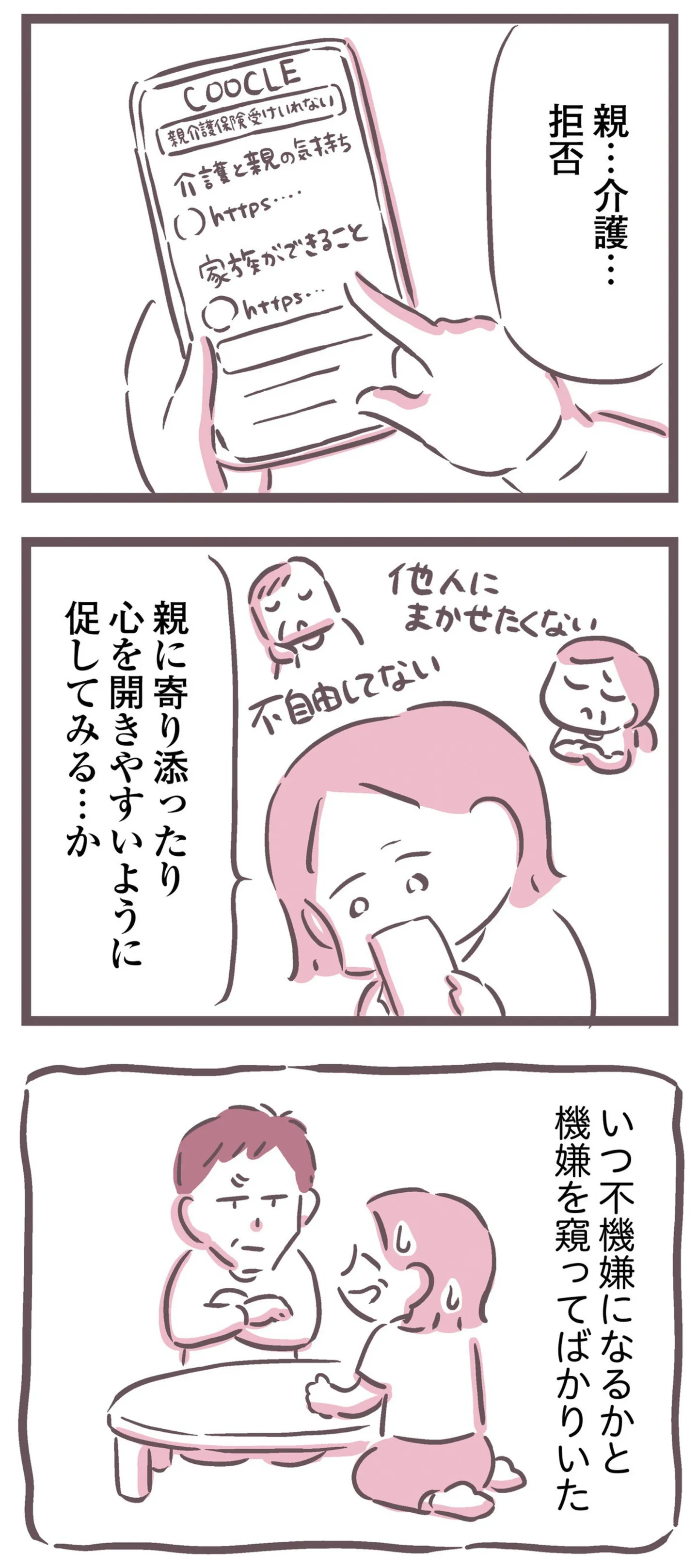 介護サービスを受け入れてもらうには? 娘が言い方を変えてみたら…/余命300日の毒親⑥ マンガ 公開日:2025/6/19 この連載を最初から読む→ <第7回に続く> 本作品をAmazon(電子)で読む > 本作品をRenta!で読む > 本作品をebookjapanで読む > 本作品をBOOK☆WALKERで読む > « 1 2 あわせて読みたい 【漫画】『余命300日の毒親』を読む 【漫画】『夫と会話になりません』を読む 【漫画】『夫ですが会社辞めました』を読む 最新マンガと話題の書籍を無料で試し読み! 前の回 一覧 人気の連載 次の回 余命300日の毒親 Amazon(電子) Amazon 楽天(電子) Renta! ebookjapan ブックライブ コミックシーモア DMMブックス U-NEXT