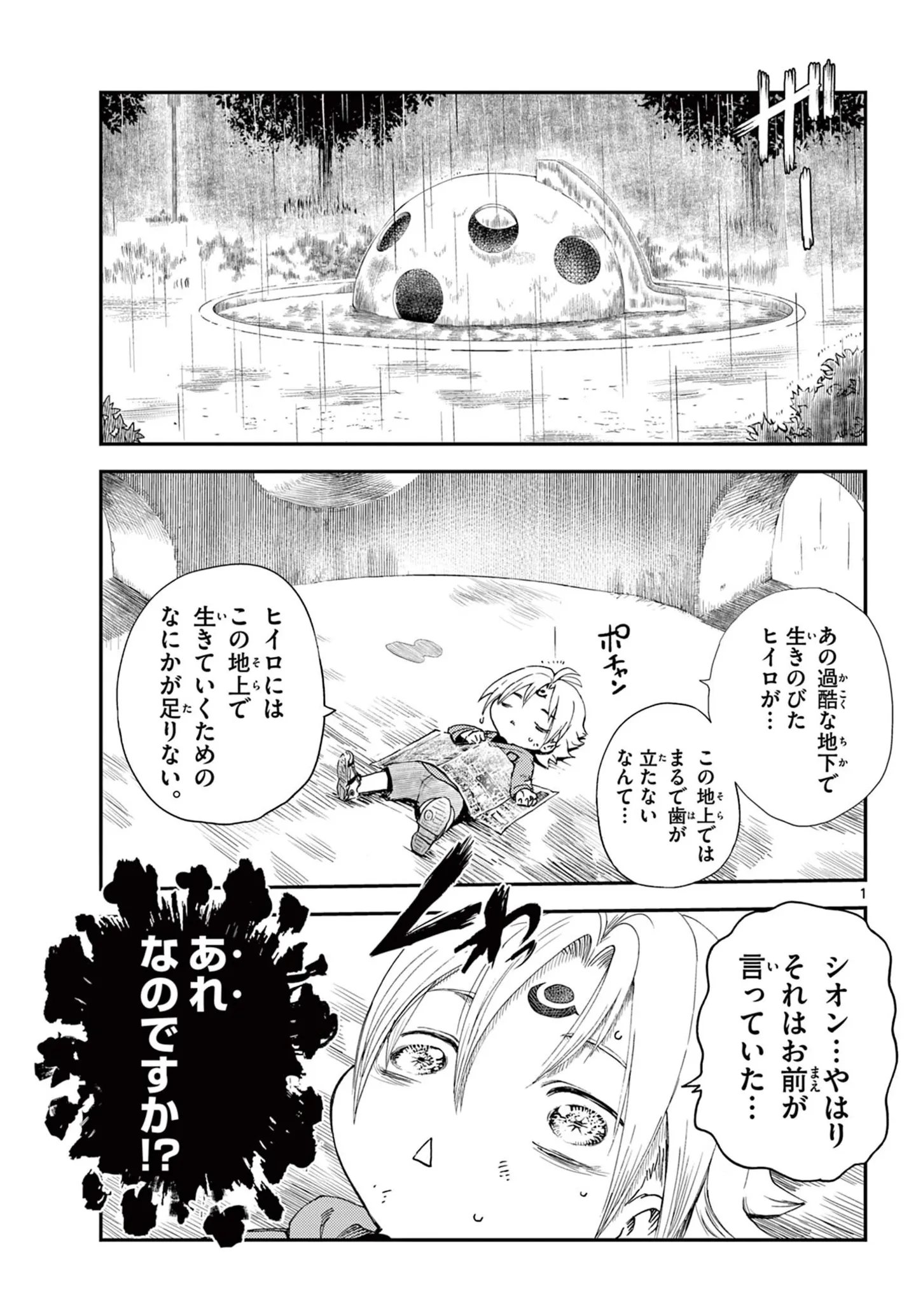 地上での目標を果たせない少年。亡き友が教えてくれた地上で生きるために必要なものが理解できない/地上へ…⑥ マンガ 公開日:2025/7/9 この連載を最初から読む→ 『地上へ…』(松江名俊/小学館)第6回【全6回】 この世界には既に「終焉」が訪れていたーー。最後の時を少しでも遅らせようと、地下3000mの世界で戦う超人(オーバーマン)たち。そのひとりであるヒイロは、亡き友が残した願いを叶えるため、地上へやってくる。仲間との絆、未知への挑戦、そして自由とは? 超人と地上で暮らすひとりの少女の出会いから始まる、壮大な物語『地上へ…』をお楽しみください! 【30日間無料】Amazonの読み放題をチェック > 本作品をAmazon(電子)で読む > 本作品をRenta!で読む > >> 次のページに続く 1 2 3 4 > あわせて読みたい 【漫画】『地上へ…』を1話目から読む 【漫画】『わたしが選んだ死産の話』を読む 【漫画】『タワマンに住んで後悔してる』を読む 最新マンガと話題の書籍を無料で試し読み! 前の回 一覧 人気の連載 次の回 地上へ…(1) (少年サンデーコミックス) Amazon(電子) Amazon 楽天(電子) Renta! ebookjapan ブックライブ コミックシーモア DMMブックス U-NEXT 地上へ… (2) (少年サンデーコミックススペシャル) Amazon