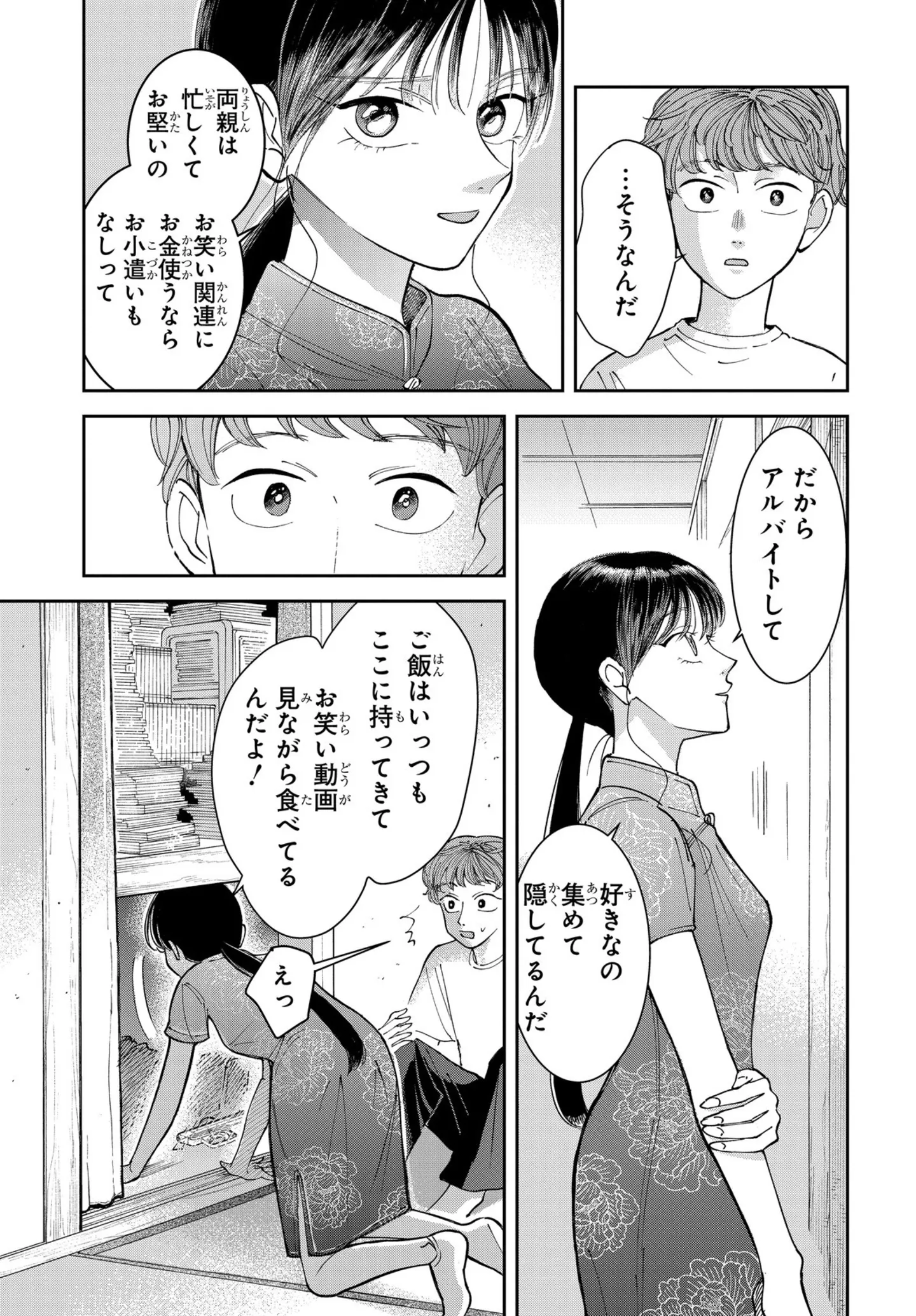 彼女の大豪邸に案内される少年。「秘密基地」という彼女の部屋に大量に隠されていたもの/スベる天使⑤ マンガ 公開日:2025/7/22 この連載を最初から読む→ <第6回に続く> 本作品をAmazon(電子)で読む > 本作品をRenta!で読む > 本作品をebookjapanで読む > 本作品をBOOK☆WALKERで読む > « 1 2 3 あわせて読みたい 【本作のレビューを読む】クラスの完璧女子の信じられない姿を目撃…! ネタが“笑えない”お笑い志望女子と冴えない相方男子の“ウケる”未来探しはどうなる? 【前話を読む】良いネタを思いつき文化祭で披露したいという彼女。舞台に立つために難しい条件を課すが…/スベる天使④ 【第1回から読む】高校2年の夏のある日、美少女で優等生なクラスメイトの意外すぎる姿を見てしまう!/スベる天使① 【漫画】『カッラフルなエッッブリデイ』を読む 最新マンガと話題の書籍を無料で試し読み! 前の回 一覧 人気の連載 次の回 スベる天使【電子限定おまけ付き】 1 (花とゆめコミックス) Amazon(電子) Amazon 楽天(電子) Renta! ebookjapan ブックライブ コミックシーモア
