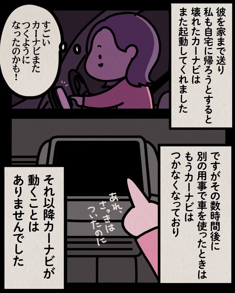 急に連絡が途絶えた遠距離恋愛中の彼氏。胸騒ぎがして車で彼氏の家に向かっていると、突然壊れていたカーナビが動き出して…【漫画家インタビュー】 15枚目/全185枚