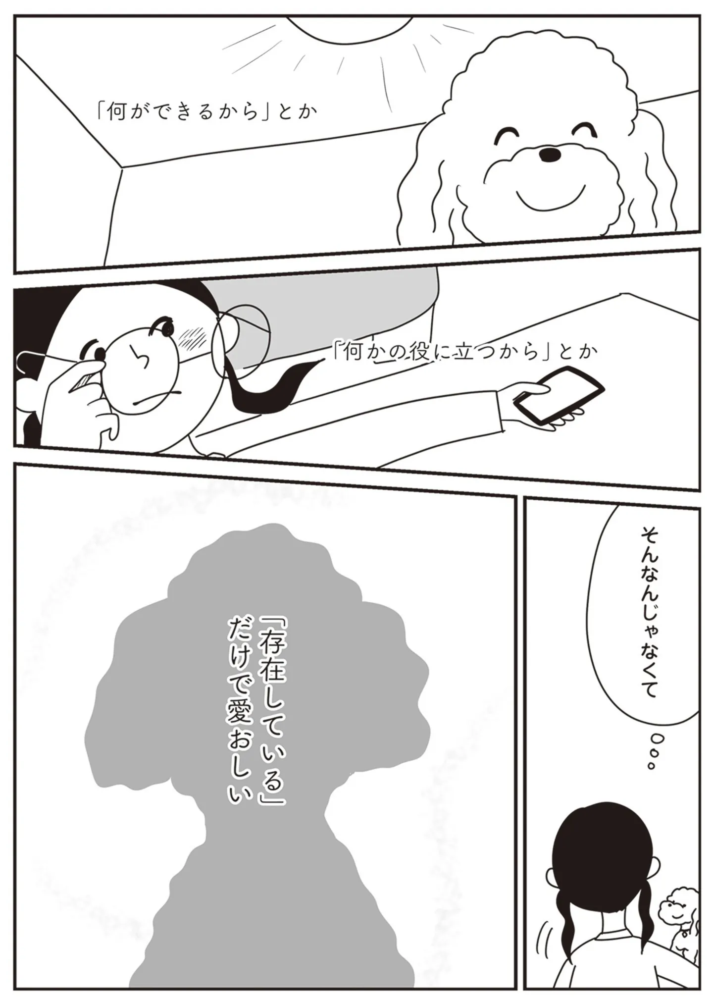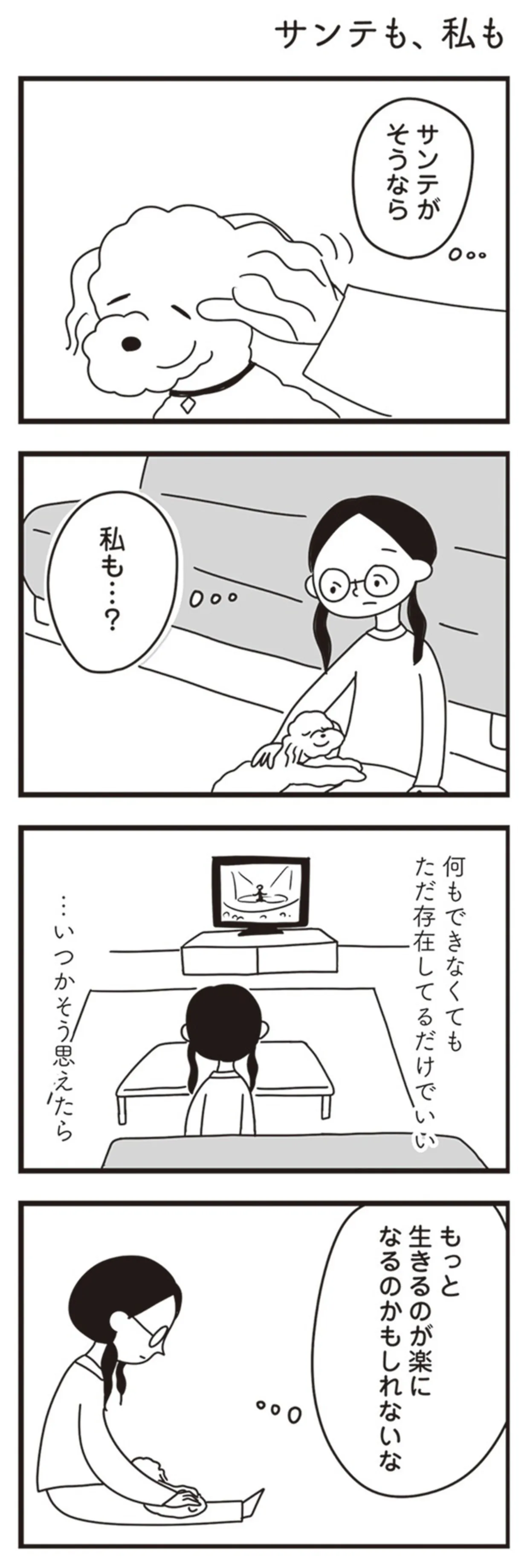ただ存在しているだけで愛おしい。愛犬がそうなら、不登校の私も?/おはよう、サンテ マンガ 公開日:2025/7/29 この連載を最初から読む→ <第12回に続く> 本作品をAmazon(電子)で読む > 本作品をRenta!で読む > 本作品をebookjapanで読む > 本作品をBOOK☆WALKERで読む > « 1 2 3 あわせて読みたい 【漫画】『おはよう、サンテ 不登校の私を救った愛犬との日々』を1話目から読む 【漫画】『黒猫ろんと暮らしたら』を読む 【漫画】『世界一幸せな飼い主にしてくれた猫』を読む 【漫画】『飼い猫がなつきません 』を読む 【漫画】『愛され女子でスミマセン』を読む 最新マンガと話題の書籍を無料で試し読み! 前の回 一覧 人気の連載 次の回 おはよう、サンテ 不登校の私を救った愛犬との日々 (コミックエッセイ) Amazon(電子) Amazon 楽天(電子) Renta! ebookjapan ブックライブ コミックシーモア DMMブックス U-NEXT