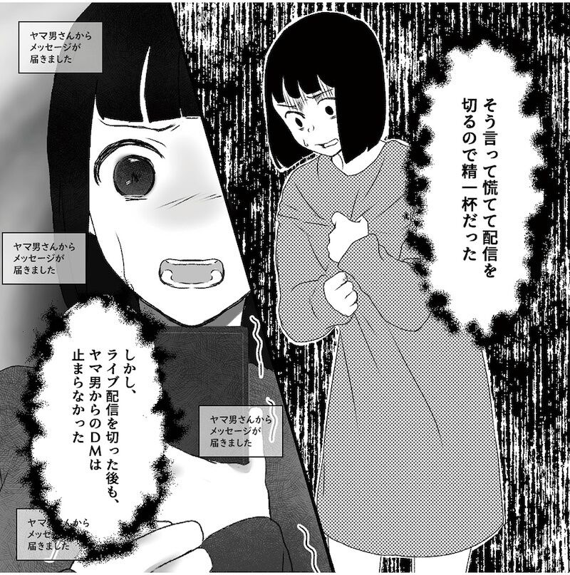 漫画家志望の女性を襲った恐怖体験。夢を叶えるためにライブ配信に挑戦するが…/「君の住所知ってるよ」ライブ配信中ヤバいファンに狙われました① 37枚目/全45枚