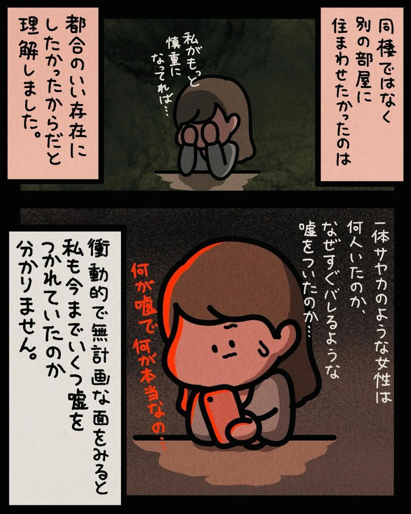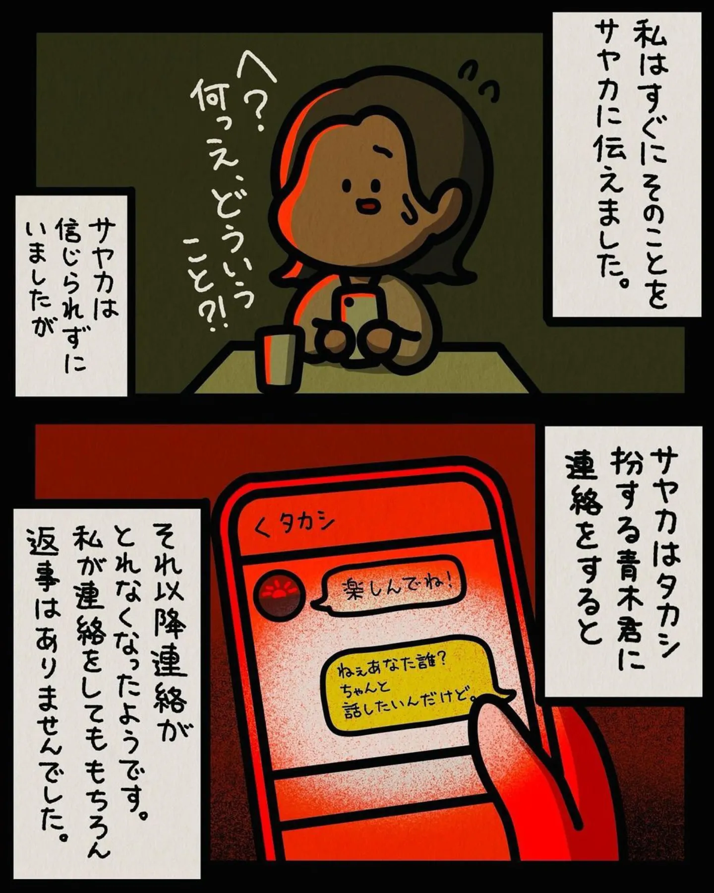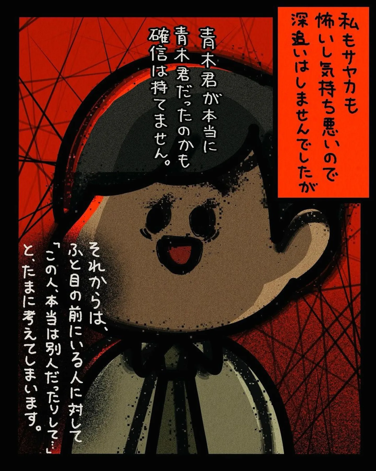 飲み仲間の友人に女友達を紹介しふたりは付き合うことに。初めて見たその彼氏に衝撃/身の毛がよだつゾッとした話 マンガ 公開日:2025/8/2 この連載を最初から読む→ <第147回に続く> 本作品をAmazon(電子)で読む > 本作品をDMMブックスで読む > 本作品をBOOK☆WALKERで読む > « 1 2 3 あわせて読みたい 飲み仲間から「友人に女の子を紹介して」と頼まれる。まずは4人での飲み会を計画するが…/身の毛がよだつゾッとした話 【漫画】『身の毛がよだつゾッとした話』を第1回から読む 【漫画】『不安の種』を読む 【漫画】『カヤちゃんはコワくない』を読む 【漫画】『ゴールデン街の悪夢~とあるBARに訪れる奇妙な客たち~』を読む 『夏にひんやり 怪談・ホラー特集』を読む! 前の回 一覧 人気の連載 次の回 身の毛がよだつゾッとした話 (コミックエッセイ) Amazon(電子) Amazon 楽天(電子) DMMブックス