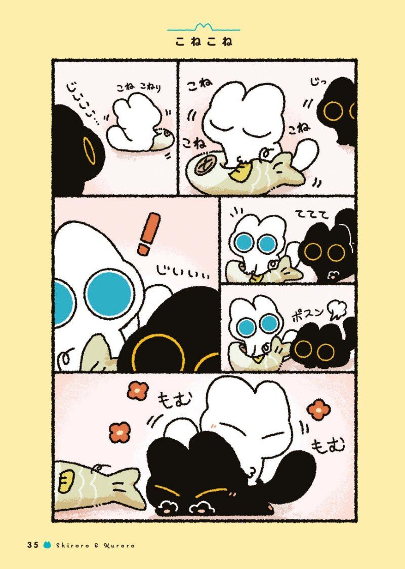 “もむもむ”“ねりねり”オノマトペが楽しい! ひとつ屋根の下で暮らすふたりのかわいい毎日に癒やされる『いつもいっしょ! しろろとくろろ』【書評】 26枚目/全85枚
