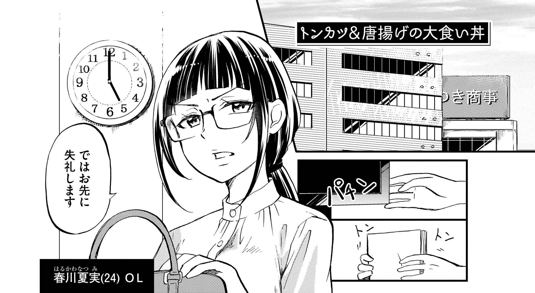 仕事はいつもキッチリ定時、遊びもしない、つねに眉間にシワありで、近寄りがたい雰囲気まんまんのOL・春川夏実。でも裏の姿は、食べ物を前にするとテンションだだ上がりの、規格外の大食い(&天然)女子だった!! 春川さんの気持ちいいほど豪快な食べっぷりと、そんな春川さんの一面を少しずつ知って、心ひかれていく同僚・芹沢くん。2人の関係は縮まりそうで縮まらない!?『春川さんは今日も飢えている』にて、不愛想で常識外れな大食いOLの食ラブコメディーをお楽しみください。