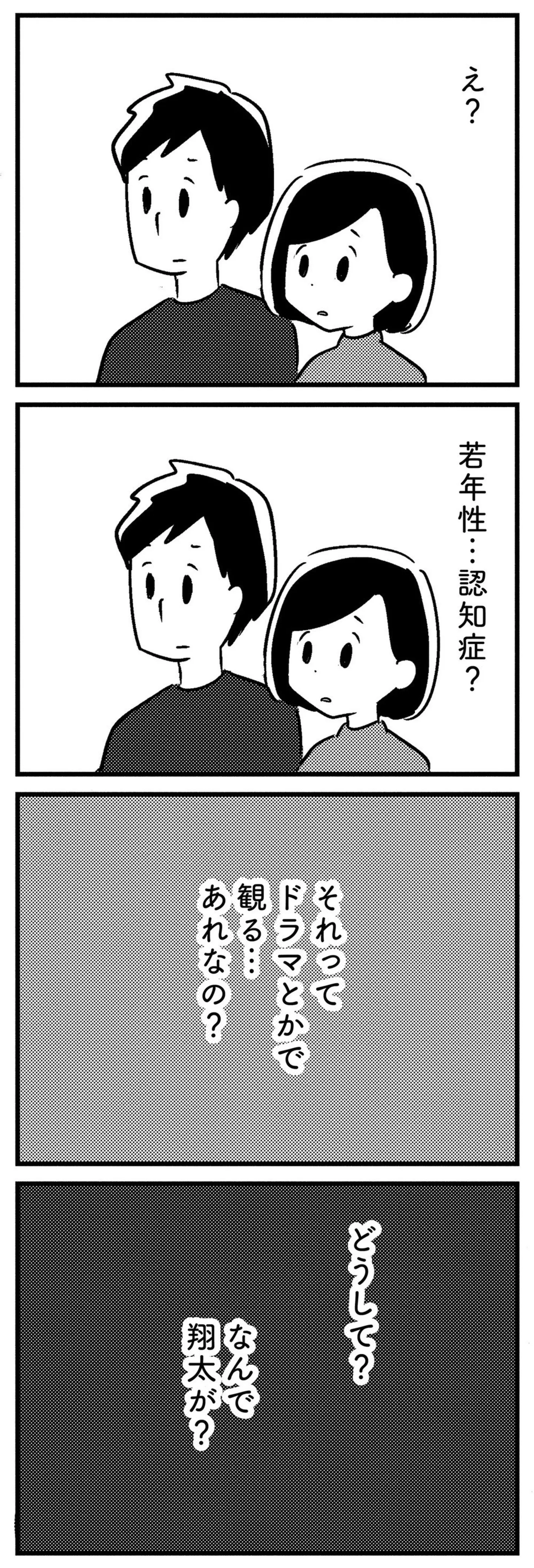 診断結果は「若年性認知症」。どうして夫が…? 状況が飲み込めない/夫がわたしを忘れる日まで⑦ マンガ 公開日:2025/10/6 この連載を最初から読む→ 本作品をAmazon(電子)で読む > 本作品をRenta!で読む > >> 次のページに続く « 1 2 3 4 > あわせて読みたい 【漫画】『夫がわたしを忘れる日まで』を第1回から読む 【漫画】『世界で一番嫌いな女』を読む 【漫画】『痔だと思ったら大腸がんステージ4でした』を読む 最新マンガと話題の書籍を無料で試し読み! 前の回 一覧 人気の連載 次の回 夫がわたしを忘れる日まで (コミックエッセイ) Amazon(電子) Amazon 楽天(電子) Renta! ebookjapan ブックライブ コミックシーモア DMMブックス U-NEXT