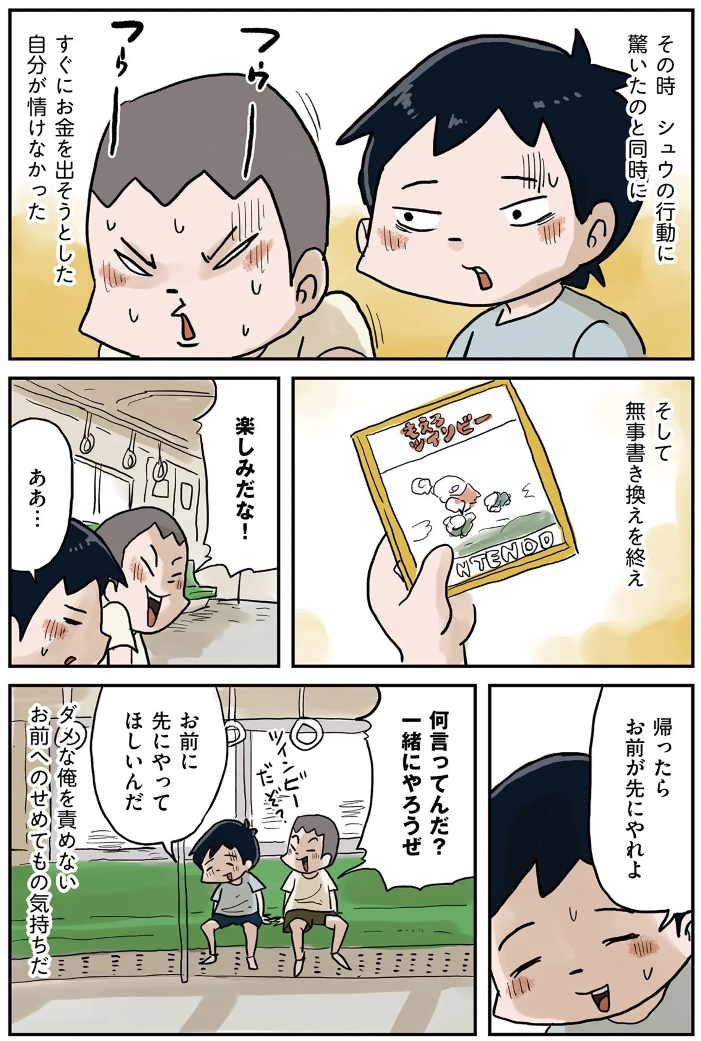 ヤンキーからのカツアゲにビビってお金を渡そうとしたら…友達の勇敢な行動に驚き!/しなのんちのいくる 3⑰ マンガ 公開日:2025/10/17 この連載を最初から読む→ <第18回に続く> 本作品をAmazon(電子)で読む > 本作品をRenta!で読む > 本作品をebookjapanで読む > 本作品をBOOK☆WALKERで読む > « 1 2 あわせて読みたい 【漫画】『しなのんちのいくる』を第1回から読む 【漫画】『ありがとう、昨日までの彼。 私が婚約者に裏切られるまで』を読む 【漫画】『メゾン・ド・レインボー』を読む 【漫画】『ギャル医者あやっぺ』を読む 【漫画】『バイトの古森くん』を読む 最新マンガと話題の書籍を無料で試し読み! 前の回 一覧 人気の連載 次の回 しなのんちのいくる (コミックエッセイ) 試し読み *電子書籍ストアBOOK☆WALKERへ移動します しなのんちのいくる2 (コミックエッセイ) 試し読み *電子書籍ストアBOOK☆WALKERへ移動します しなのんちのいくる3 (コミックエッセイ) 試し読み *電子書籍ストアBOOK☆WALKERへ移動します しなのんちのいくる4 (コミックエッセイ) 試し読み *電子書籍ストアBOOK☆WALKERへ移動します しなのんちのいくる5 (コミックエッセイ) 試し読み *電子書籍ストアBOOK☆WALKERへ移動します しなのんちのいくる6 (コミックエッセイ) 試し読み *電子書籍ストアBOOK☆WALKERへ移動します