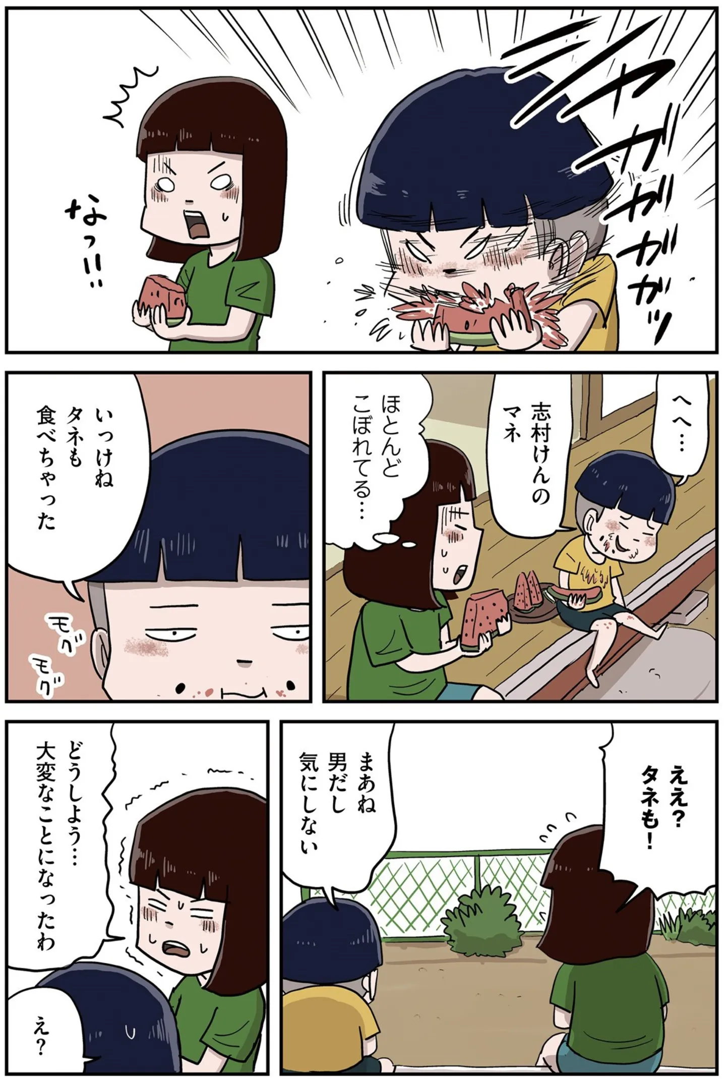 「志村けんのマネ」スイカを一気食いした少年はタネまで食べてしまい、大パニック!/しなのんちのいくる 3⑲ マンガ 公開日:2025/10/19 この連載を最初から読む→ <第20回に続く> 本作品をAmazon(電子)で読む > 本作品をRenta!で読む > 本作品をebookjapanで読む > 本作品をBOOK☆WALKERで読む > « 1 2 あわせて読みたい 【漫画】『しなのんちのいくる』を第1回から読む 【漫画】『愛され女子でスミマセン』を読む 【漫画】『いいね!光源氏くん』を読む 【漫画】『じいさんばあさん若返る』を読む 【漫画】『小学生エムモトえむみの勝手きままライフ』を読む 最新マンガと話題の書籍を無料で試し読み! 前の回 一覧 人気の連載 次の回 しなのんちのいくる (コミックエッセイ) Amazon(電子) Amazon 楽天(電子) Renta! ebookjapan ブックライブ コミックシーモア DMMブックス U-NEXT しなのんちのいくる2 (コミックエッセイ) Amazon(電子) Amazon 楽天(電子) しなのんちのいくる3 (コミックエッセイ) Amazon(電子) Amazon 楽天(電子) しなのんちのいくる4 (コミックエッセイ) Amazon(電子) Amazon 楽天(電子) しなのんちのいくる5 (コミックエッセイ) Amazon(電子) Amazon 楽天(電子) しなのんちのいくる6 (コミックエッセイ) Amazon(電子) Amazon 楽天(電子)