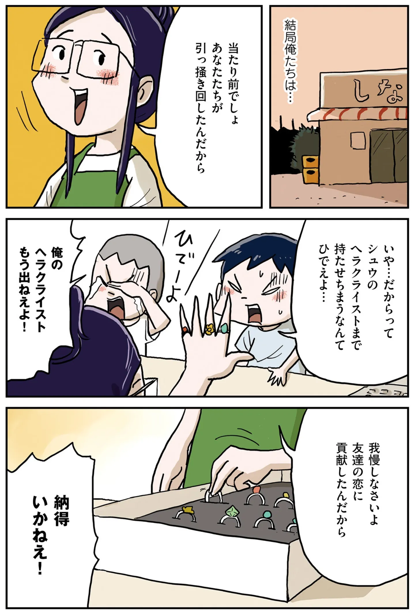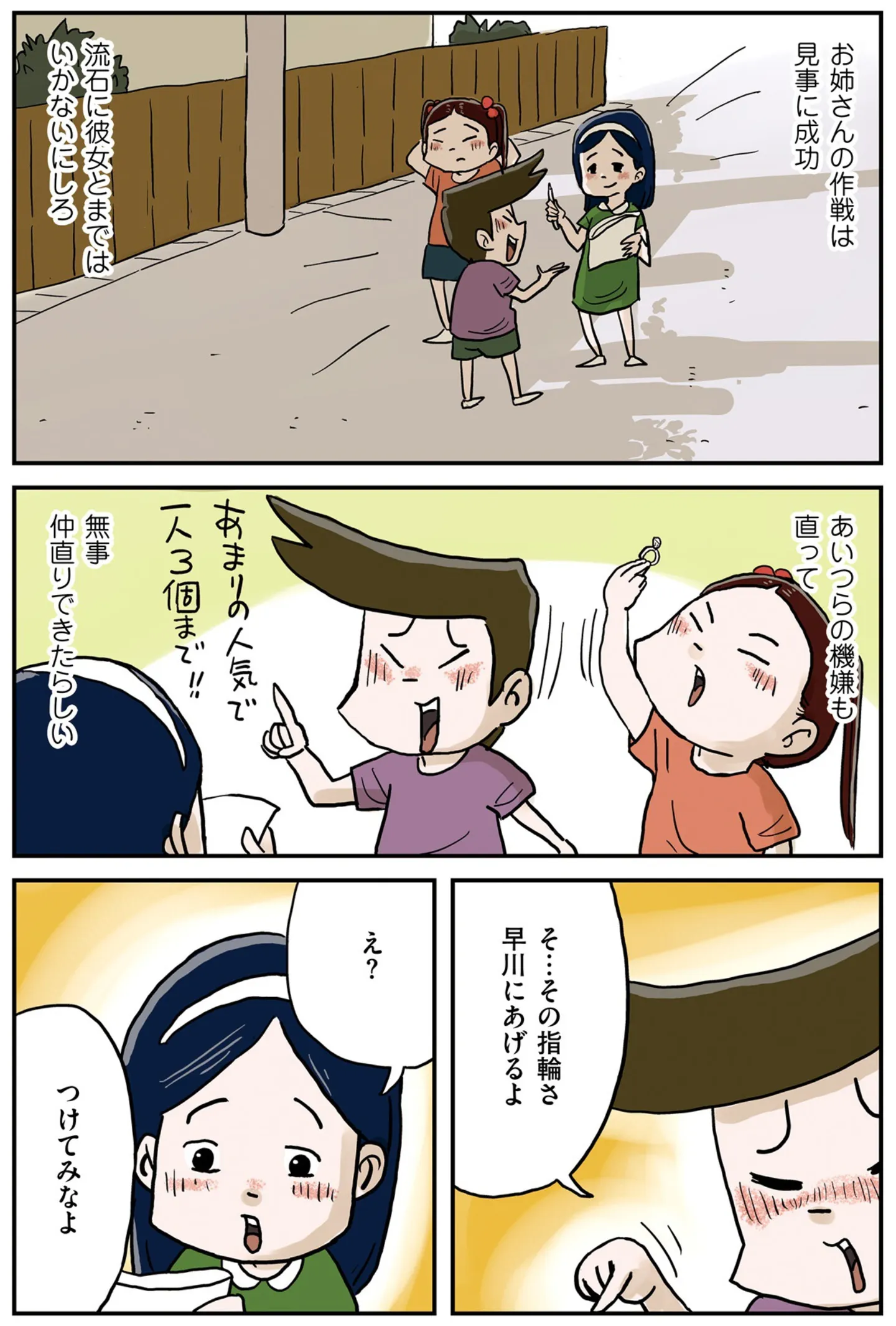 おもちゃの指輪で仲直り? お店のお姉さんが男子の恋を応援するためにひと肌脱ぐ!/しなのんちのいくる 5㉝ マンガ 公開日:2025/11/2 この連載を最初から読む→ <第34回に続く> 本作品をAmazon(電子)で読む > 本作品をRenta!で読む > 本作品をebookjapanで読む > 本作品をBOOK☆WALKERで読む > « 1 2 3 あわせて読みたい 【漫画】『しなのんちのいくる』を第1回から読む 【漫画】『どちらかの家庭が崩壊する漫画』を読む 【漫画】『もしかして、近所のあの子は放置子』を読む 【漫画】『40キロ痩せても幸せになれなかった話』を読む 【漫画】『消えたママ友』を読む 最新マンガと話題の書籍を無料で試し読み! 前の回 一覧 人気の連載 次の回 しなのんちのいくる (コミックエッセイ) Amazon(電子) Amazon 楽天(電子) Renta! ebookjapan ブックライブ コミックシーモア DMMブックス U-NEXT しなのんちのいくる2 (コミックエッセイ) Amazon(電子) Amazon 楽天(電子) しなのんちのいくる3 (コミックエッセイ) Amazon(電子) Amazon 楽天(電子) しなのんちのいくる4 (コミックエッセイ) Amazon(電子) Amazon 楽天(電子) しなのんちのいくる5 (コミックエッセイ) Amazon(電子) Amazon 楽天(電子) しなのんちのいくる6 (コミックエッセイ) Amazon(電子) Amazon 楽天(電子)