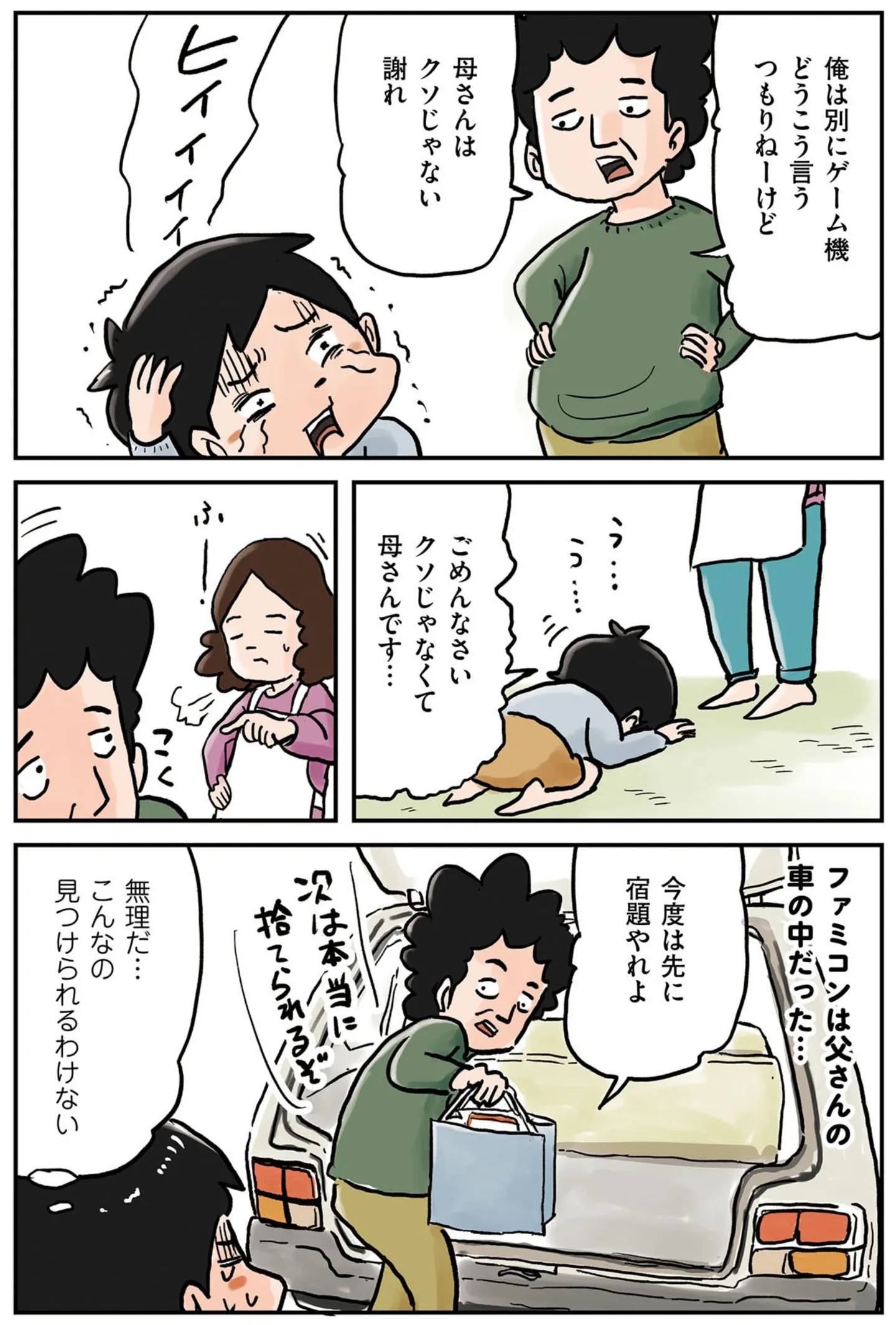 約束を守らないからゲーム機を捨てられた? どこかに隠してあるはず、と探してみるが…/しなのんちのいくる 6㊳ マンガ 公開日:2025/11/7 この連載を最初から読む→ <第39回に続く> 本作品をAmazon(電子)で読む > 本作品をRenta!で読む > 本作品をebookjapanで読む > 本作品をBOOK☆WALKERで読む > « 1 2 あわせて読みたい 【漫画】『しなのんちのいくる』を第1回から読む 【漫画】『愛され女子でスミマセン』を読む 【漫画】『じいさんばあさん若返る』を読む 【漫画】『小学生エムモトえむみの勝手きままライフ』を読む 【漫画】『パパ、赤ちゃんが生まれないなら再婚してもいいよ』を読む 最新マンガと話題の書籍を無料で試し読み! 前の回 一覧 人気の連載 次の回 しなのんちのいくる (コミックエッセイ) 試し読み *電子書籍ストアBOOK☆WALKERへ移動します しなのんちのいくる2 (コミックエッセイ) 試し読み *電子書籍ストアBOOK☆WALKERへ移動します しなのんちのいくる3 (コミックエッセイ) 試し読み *電子書籍ストアBOOK☆WALKERへ移動します しなのんちのいくる4 (コミックエッセイ) 試し読み *電子書籍ストアBOOK☆WALKERへ移動します しなのんちのいくる5 (コミックエッセイ) 試し読み *電子書籍ストアBOOK☆WALKERへ移動します しなのんちのいくる6 (コミックエッセイ) 試し読み *電子書籍ストアBOOK☆WALKERへ移動します