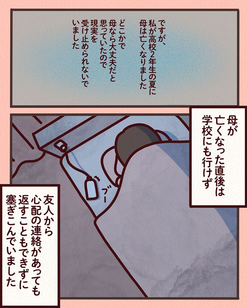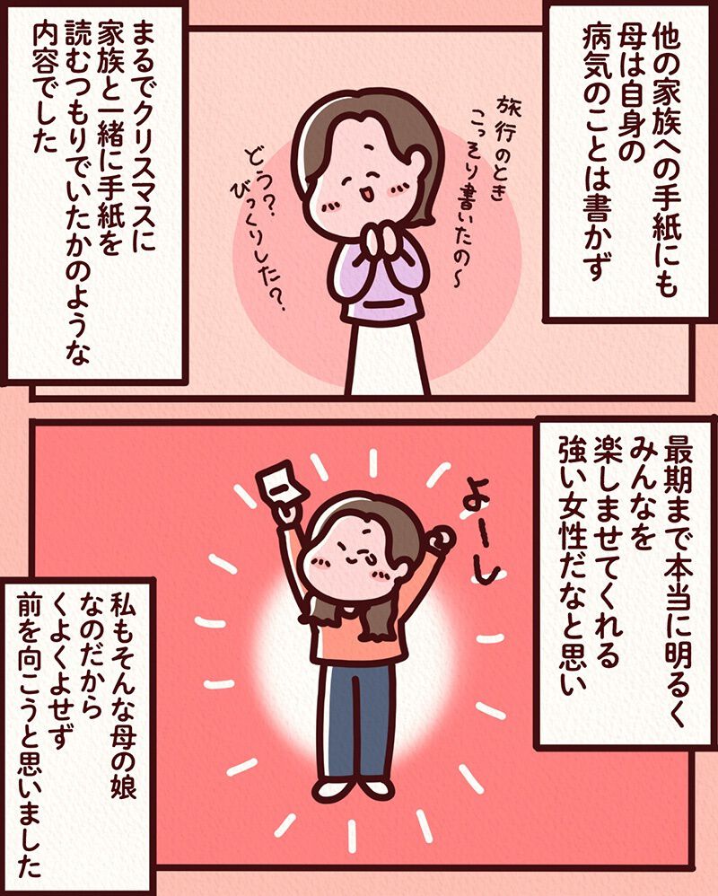 明るくて家族の中心だった母親が他界。受け入れられず塞ぎこんだ日々を送っていると、一通の手紙が届く。差出人は生前の母親だった【漫画家インタビュー】 3枚目/全177枚