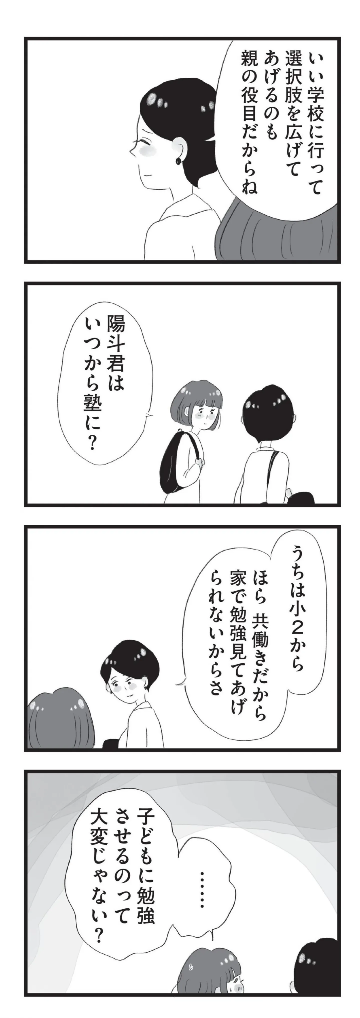 「ソーゴーショーシャとか言ってたよ」親の職業の話をするタワマンに住む子どもたち/タワマンに住んで後悔してる④ マンガ 公開日:2025/10/3 この連載を最初から読む→ 本作品をAmazon(電子)で読む > 本作品をRenta!で読む > >> 次のページに続く « 1 2 3 > あわせて読みたい 【漫画】『タワマンに住んで後悔してる』を第1回から読む 【漫画】『家族を忘れた父親との23年間』を読む 【漫画】『すべては子どものためだと思ってた』を読む 最新マンガと話題の書籍を無料で試し読み! 前の回 一覧 人気の連載 次の回 タワマンに住んで後悔してる (コミックエッセイ) Amazon(電子) Amazon 楽天(電子) Renta! ebookjapan ブックライブ コミックシーモア DMMブックス U-NEXT