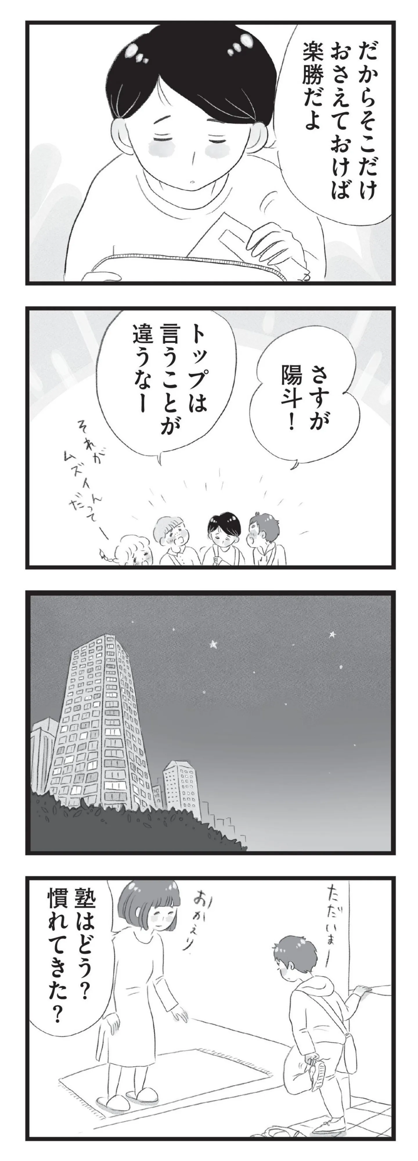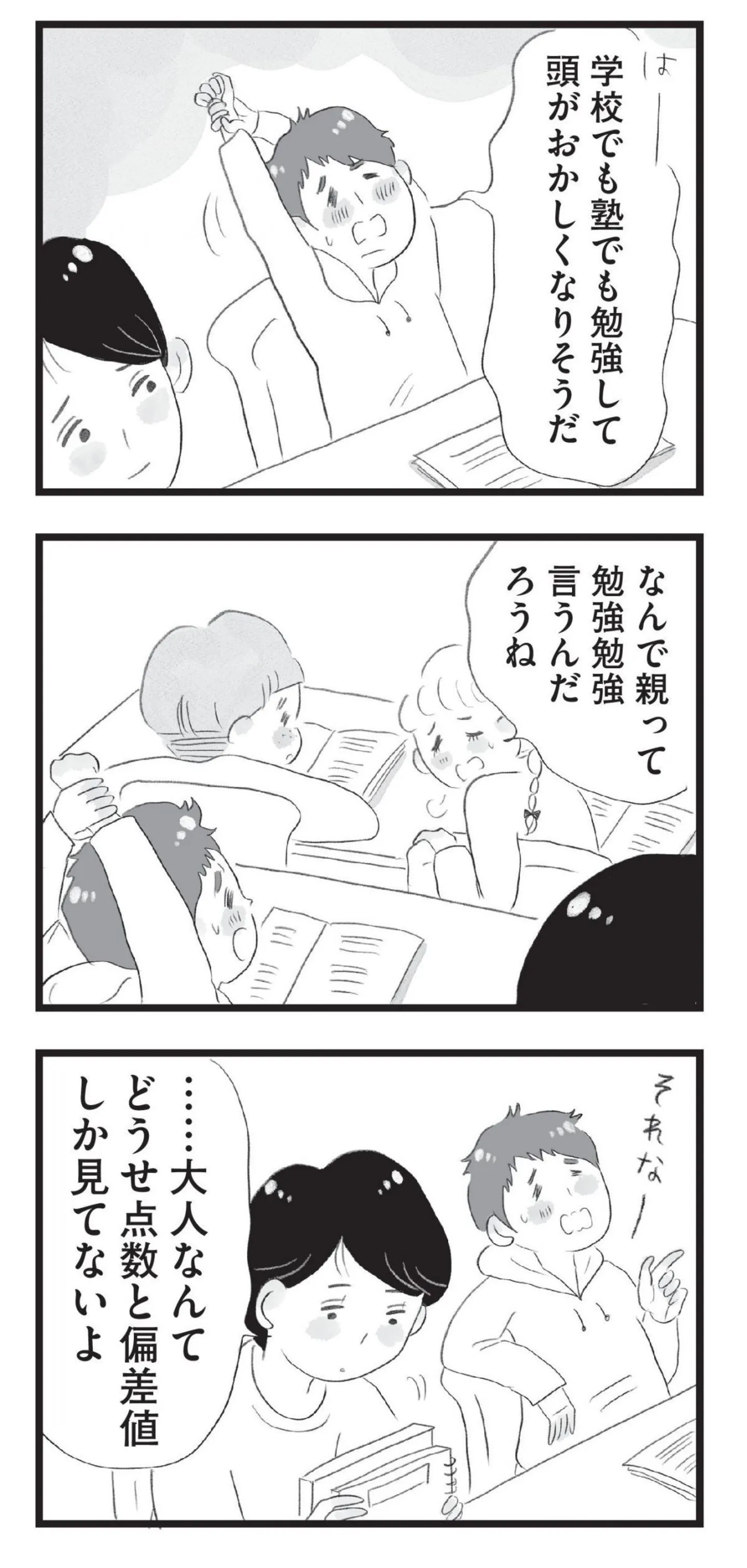 塾に入って息子と周囲の学力差が明らかに。焦る母はママ友から勉強方法を聞き出す/タワマンに住んで後悔してる⑥ マンガ 公開日:2025/10/5 この連載を最初から読む→ 本作品をAmazon(電子)で読む > 本作品をRenta!で読む > >> 次のページに続く « 1 2 3 > あわせて読みたい 【漫画】『タワマンに住んで後悔してる』を第1回から読む 【漫画】『今日もネコ様の圧が強い』を読む 【漫画】『わたし、迷子のお母さん ある日突然、母親するのが苦しくなった』を読む 最新マンガと話題の書籍を無料で試し読み! 前の回 一覧 人気の連載 次の回 タワマンに住んで後悔してる (コミックエッセイ) Amazon(電子) Amazon 楽天(電子) Renta! ebookjapan ブックライブ コミックシーモア DMMブックス U-NEXT