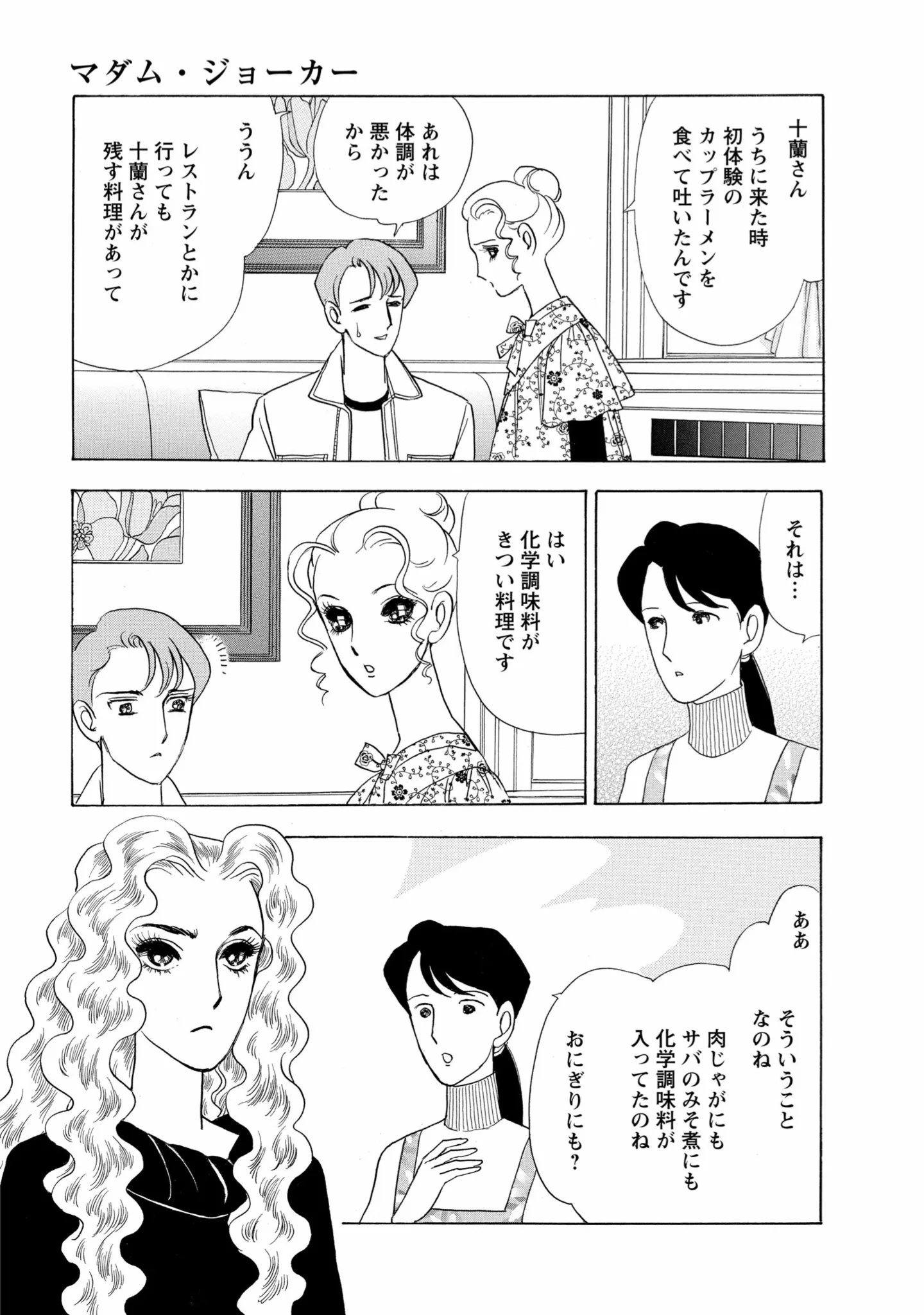 女子の手料理で気分が悪くなったイケメン御曹司。体調を崩す食べ物にはある共通点が/マダム・ジョーカー9(57) マンガ 公開日:2025/10/7 この連載を最初から読む→ 本作品をAmazon(電子)で読む > 本作品をRenta!で読む > >> 次のページに続く « 1 2 3 > あわせて読みたい 【漫画】『マダム・ジョーカー』を第1回から読む 【漫画】『愛され女子でスミマセン』を読む 【漫画】『心曇る日は ご自愛ごはんを』を読む 最新マンガと話題の書籍を無料で試し読み! 前の回 一覧 人気の連載 次の回 マダム・ジョーカー : 1 (ジュールコミックス) Amazon(電子) Amazon 楽天(電子) Renta! ebookjapan ブックライブ コミックシーモア DMMブックス U-NEXT マダム・ジョーカー : 2 (ジュールコミックス) Amazon(電子) Amazon 楽天(電子) マダム・ジョーカー : 3 (ジュールコミックス) Amazon(電子) Amazon 楽天(電子) マダム・ジョーカー : 4 (ジュールコミックス) Amazon(電子) Amazon 楽天(電子) マダム・ジョーカー : 5 (ジュールコミックス) Amazon(電子) Amazon 楽天(電子) マダム・ジョーカー : 6 (ジュールコミックス) Amazon(電子) Amazon 楽天(電子) マダム・ジョーカー : 7 (ジュールコミックス) Amazon(電子) Amazon 楽天(電子) マダム・ジョーカー : 8 (ジュールコミックス) Amazon(電子) Amazon 楽天(電子) マダム・ジョーカー : 9 (ジュールコミックス) Amazon(電子) Amazon 楽天(電子) マダム・ジョーカー : 10 (ジュールコミックス) Amazon(電子) Amazon 楽天(電子) マダム・ジョーカー : 30 (ジュールコミックス) Amazon(電子) Amazon 楽天(電子)