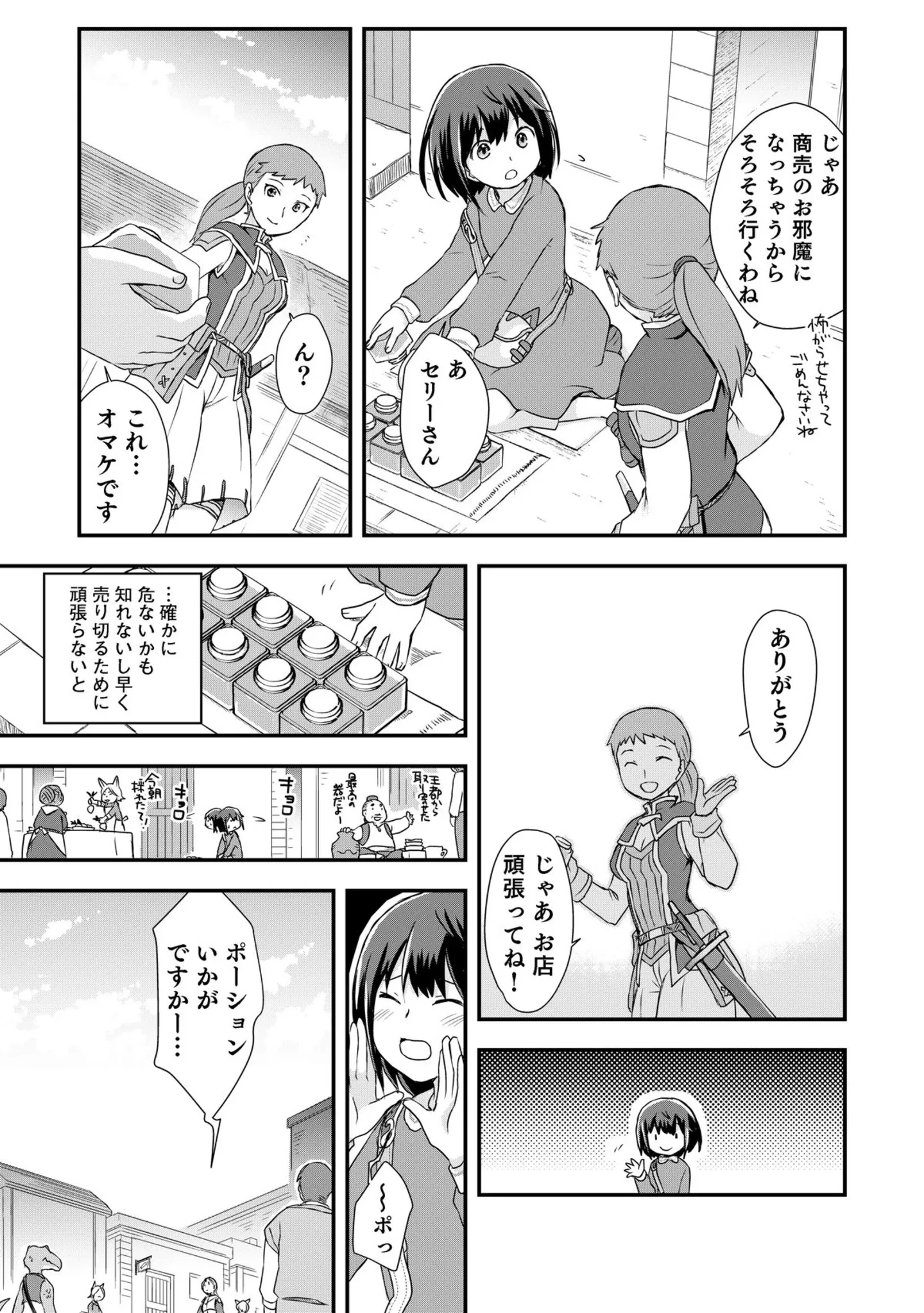 武器屋や防具屋のある街の通りでいよいよ初めての露天販売! 客の第一号は?/ポーション、わが身を助ける⑨ マンガ 公開日:2025/10/7 この連載を最初から読む→ 本作品をAmazon(電子)で読む > 本作品をRenta!で読む > >> 次のページに続く « 1 2 3 > あわせて読みたい 【漫画】『ポーション、わが身を助ける』を第1回から読む 『ポーション、わが身を助ける』アニメ放送前に原作をおさらい! 平凡な女子高生が異世界で懸命に生き抜く姿に胸が熱くなる 「道楽」で異世界を旅する中年男のファンタジー! 仕事に追われる日々から一変、自由気ままな暮らしを満喫 【漫画】『ママ5年目でがんなんて 手に入れた卵子と失った味覚』を読む 【漫画】『マウンティングママ友が、全てを失った話』を読む 最新マンガと話題の書籍を無料で試し読み! 前の回 一覧 人気の連載 次の回 ポーション、わが身を助ける 第1話 (ヒーローコミックス) Amazon 楽天(電子) Renta! ebookjapan ブックライブ コミックシーモア DMMブックス U-NEXT ポーション、わが身を助ける 第15話 (ヒーローコミックス) Amazon 楽天(電子)
