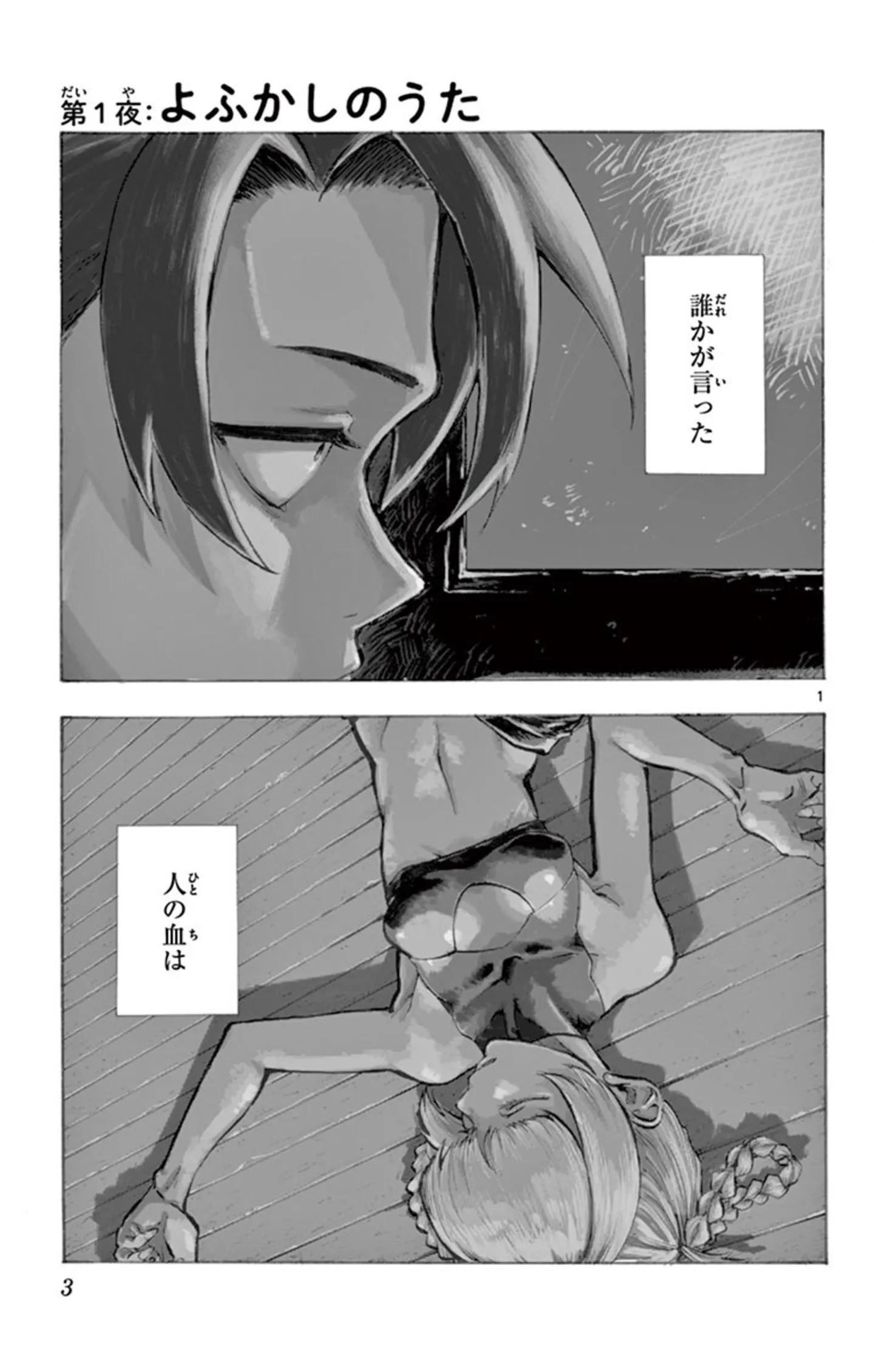 眠れない夜。突然不登校になった中学2年生の少年が、誰にも言わず初めて夜に外出してみると?/よふかしのうた① マンガ 公開日:2025/9/30 『よふかしのうた』(コトヤマ/小学館)第1回【全19回】 恋と青春は、夜に生まれる──。不眠が続く中学2年生・夜守コウは初めてひとりで外に出た夜、美しい吸血鬼・七草ナズナと出会う。「今日に満足できるまで、夜ふかししてみろよ。少年」。ナズナとのふたりきりの夜ふかしがコウの運命を大きく動かしていく。アニメ第2期も放送中の、夜の静寂と青春が交差する異色ラブストーリー『よふかしのうた』をお楽しみください! 【30日間無料】Amazonの読み放題をチェック > 本作品をAmazon(電子)で読む > 本作品をRenta!で読む > >> 次のページに続く 1 2 3 4 > あわせて読みたい 【本書のレビュー記事を見る】夜の街を彷徨う不眠少年と、そこで出会った美少女吸血鬼。ふたりの恋の行方は? あなたの夜更かしがさらに捗るボーイミーツガール『よふかしのうた』【書評】 【漫画】『よふかしのうた』を読む 【漫画】『気になってる人が男じゃなかった』を読む 最新マンガと話題の書籍を無料で試し読み! 前の回 一覧 人気の連載 次の回 よふかしのうた(1) (少年サンデーコミックス) Amazon(電子) Amazon 楽天(電子) Renta! ebookjapan ブックライブ コミックシーモア DMMブックス U-NEXT よふかしのうた(20) (少年サンデーコミックス) Amazon(電子) Amazon 楽天(電子) Renta! ebookjapan ブックライブ コミックシーモア DMMブックス U-NEXT