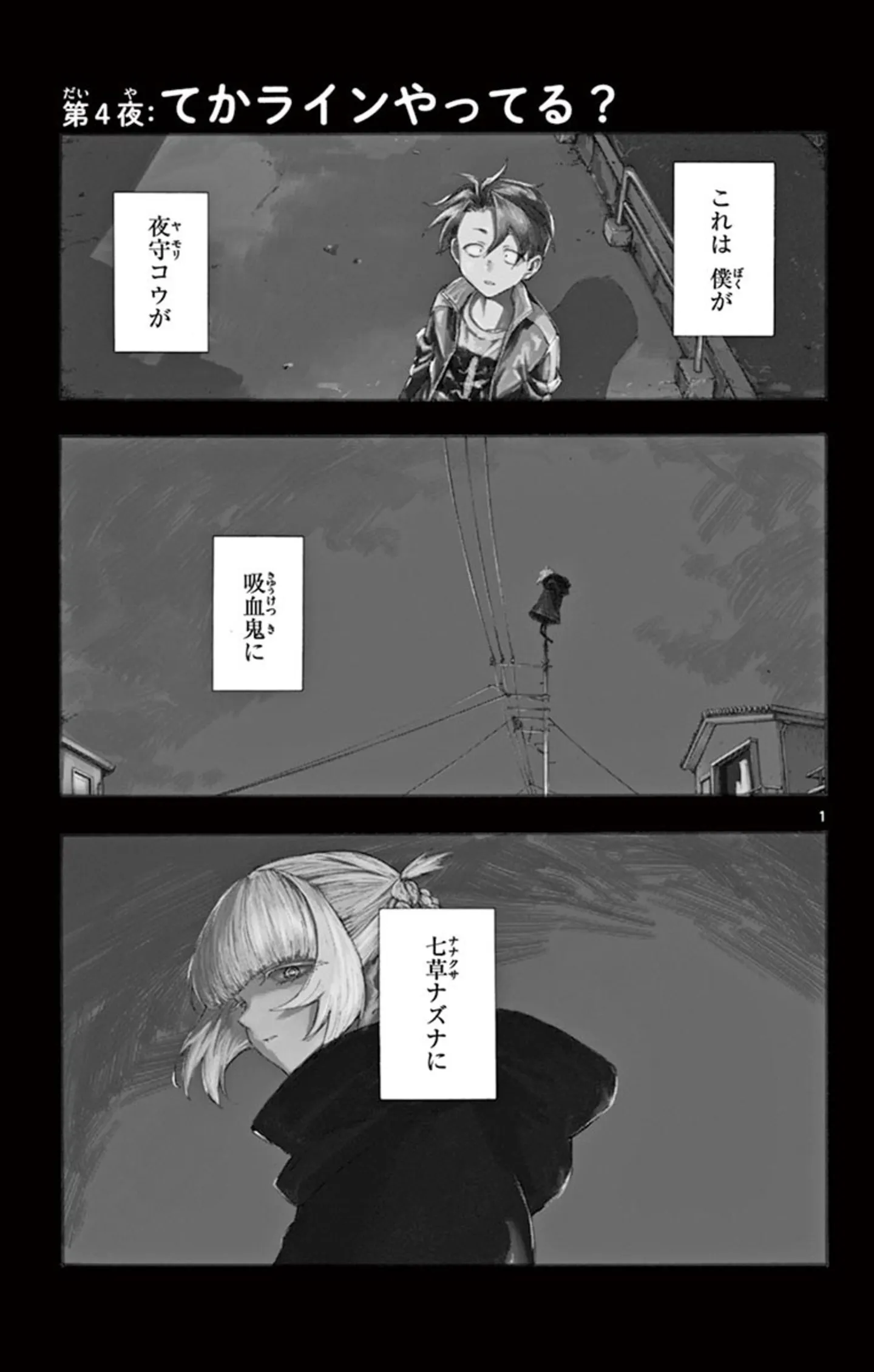吸血鬼に会うため夜の街を探し回り、ようやく見つけた彼女の一言に動揺する/よふかしのうた⑤ マンガ 公開日:2025/10/4 この連載を最初から読む→ 『よふかしのうた』(コトヤマ/小学館)第5回【全19回】 恋と青春は、夜に生まれる──。不眠が続く中学2年生・夜守コウは初めてひとりで外に出た夜、美しい吸血鬼・七草ナズナと出会う。「今日に満足できるまで、夜ふかししてみろよ。少年」。ナズナとのふたりきりの夜ふかしがコウの運命を大きく動かしていく。アニメ第2期も放送中の、夜の静寂と青春が交差する異色ラブストーリー『よふかしのうた』をお楽しみください! 【30日間無料】Amazonの読み放題をチェック > 本作品をAmazon(電子)で読む > 本作品をRenta!で読む > >> 次のページに続く 1 2 3 4 > あわせて読みたい 【本書のレビュー記事を見る】夜の街を彷徨う不眠少年と、そこで出会った美少女吸血鬼。ふたりの恋の行方は? あなたの夜更かしがさらに捗るボーイミーツガール『よふかしのうた』【書評】 【漫画】『よふかしのうた』を第1回から読む 【漫画】『ある幼なじみが結婚するまでの話』を読む 最新マンガと話題の書籍を無料で試し読み! 前の回 一覧 人気の連載 次の回 よふかしのうた(1) (少年サンデーコミックス) Amazon(電子) Amazon 楽天(電子) Renta! ebookjapan ブックライブ コミックシーモア DMMブックス U-NEXT よふかしのうた(20) (少年サンデーコミックス) Amazon(電子) Amazon 楽天(電子) Renta! ebookjapan ブックライブ コミックシーモア DMMブックス U-NEXT