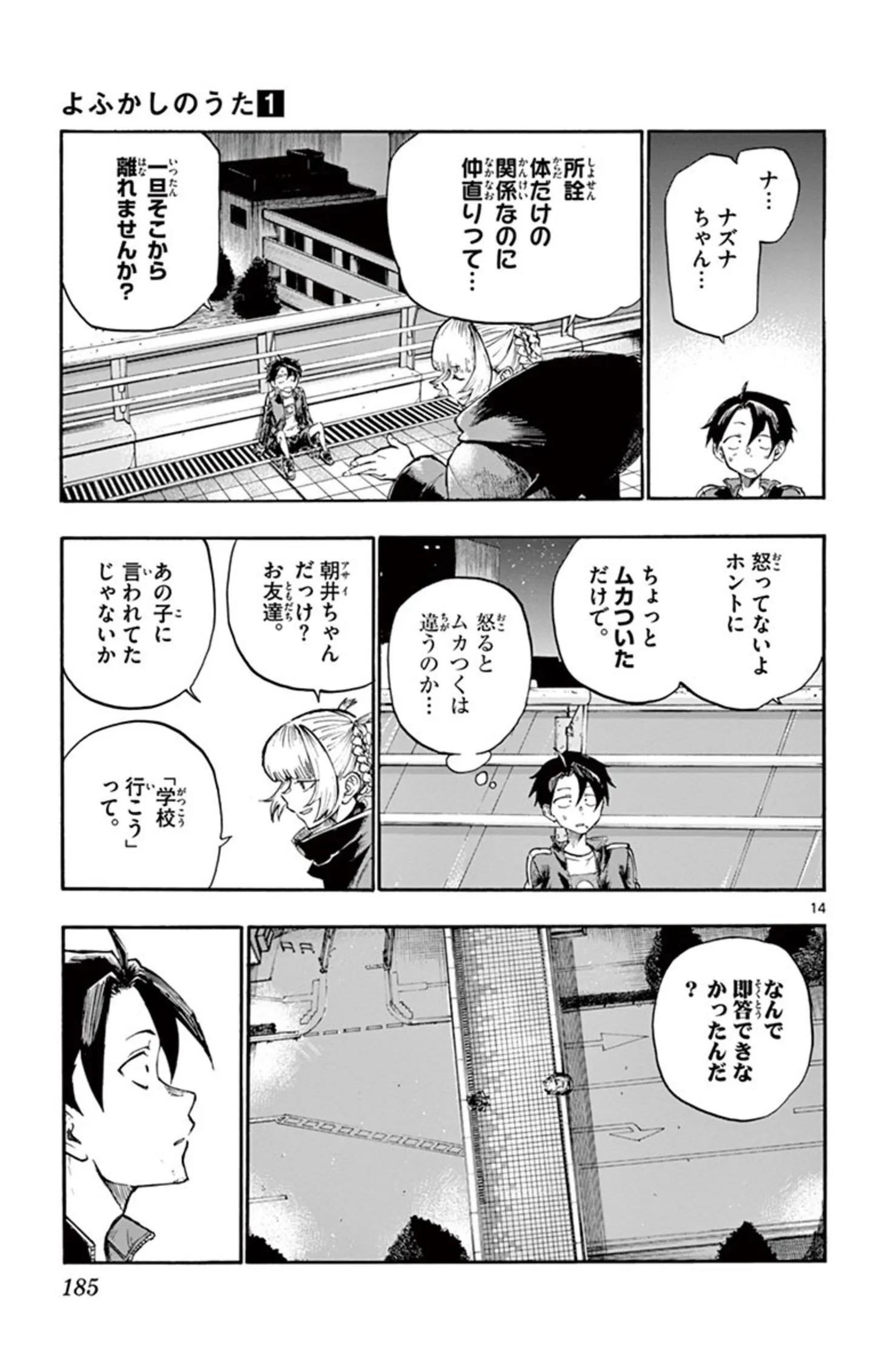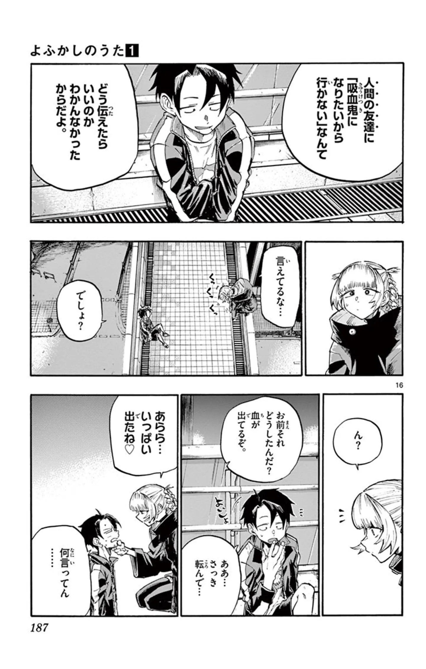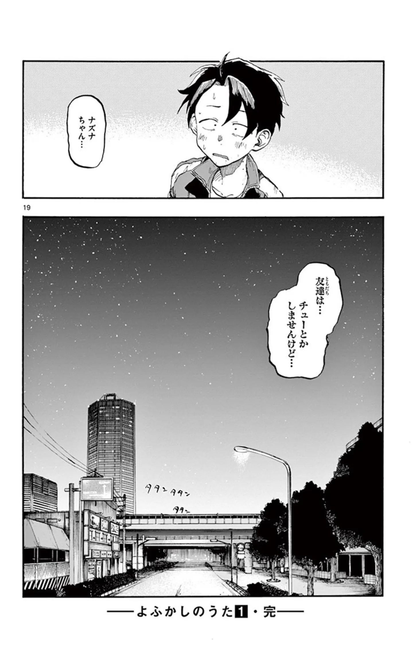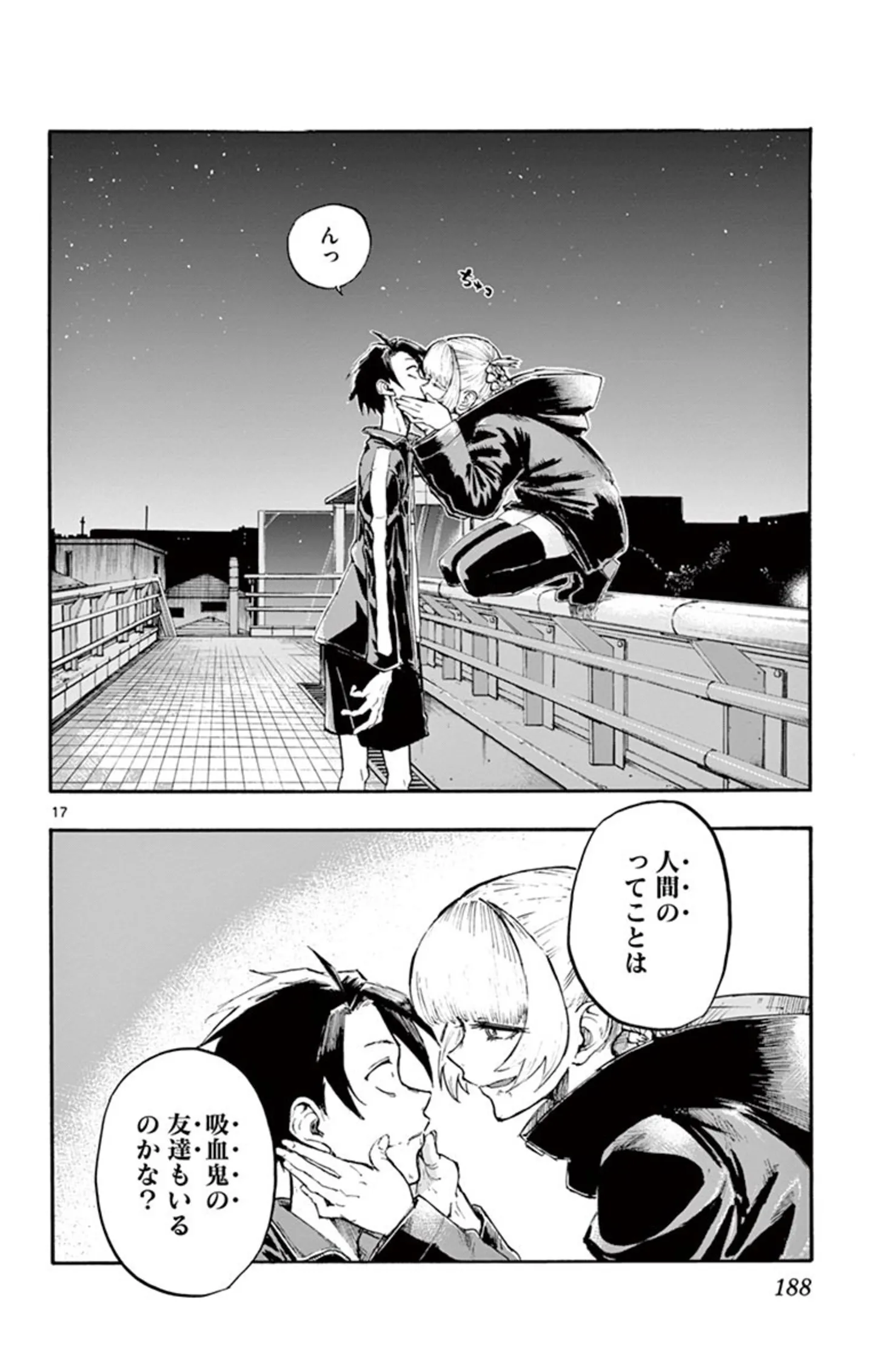 怒っていないと言いながらずっと不機嫌な吸血鬼。思い切ってその態度の理由を尋ねてみる/よふかしのうた⑨ マンガ 公開日:2025/10/8 この連載を最初から読む→ <第10回に続く> 本作品をAmazon(電子)で読む > 本作品をRenta!で読む > 本作品をebookjapanで読む > 本作品をBOOK☆WALKERで読む > « 1 2 3 4 あわせて読みたい 【本書のレビュー記事を見る】夜の街を彷徨う不眠少年と、そこで出会った美少女吸血鬼。ふたりの恋の行方は? あなたの夜更かしがさらに捗るボーイミーツガール『よふかしのうた』【書評】 【漫画】『よふかしのうた』を第1回から読む 【漫画】『毎月庭つき大家つき』を読む 最新マンガと話題の書籍を無料で試し読み! 前の回 一覧 人気の連載 次の回 よふかしのうた(1) (少年サンデーコミックス) Amazon(電子) Amazon 楽天(電子) Renta! ebookjapan ブックライブ コミックシーモア DMMブックス U-NEXT よふかしのうた(20) (少年サンデーコミックス) Amazon(電子) Amazon 楽天(電子) Renta! ebookjapan ブックライブ コミックシーモア DMMブックス U-NEXT