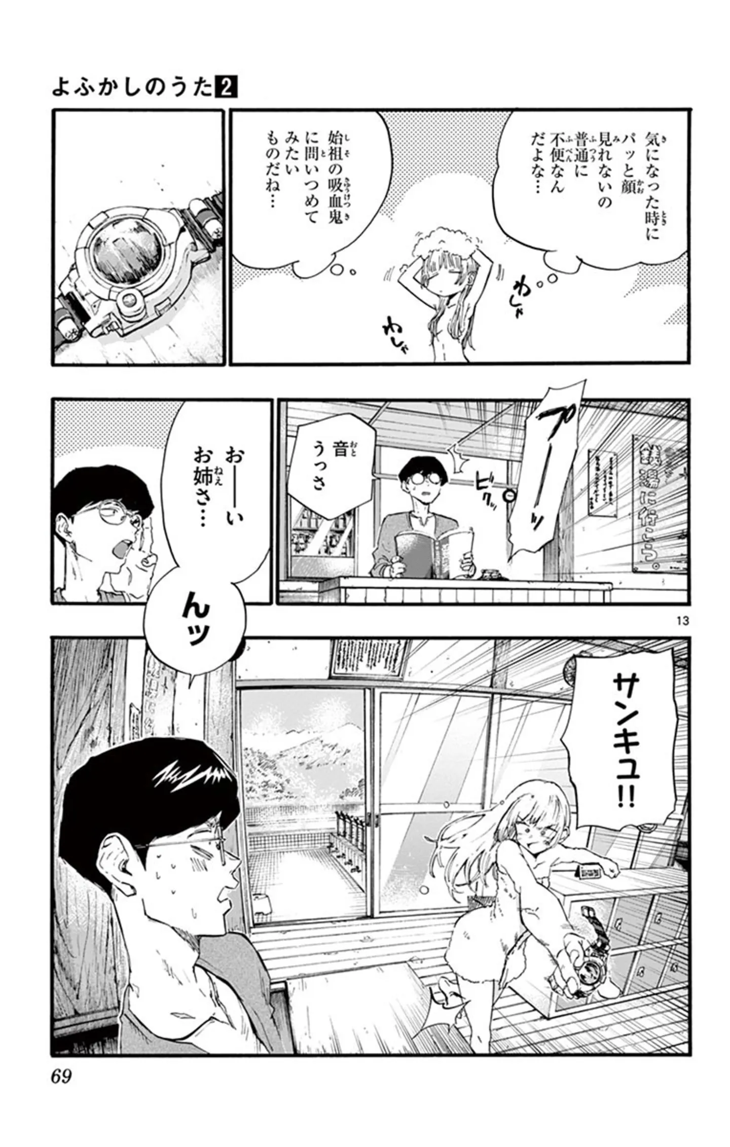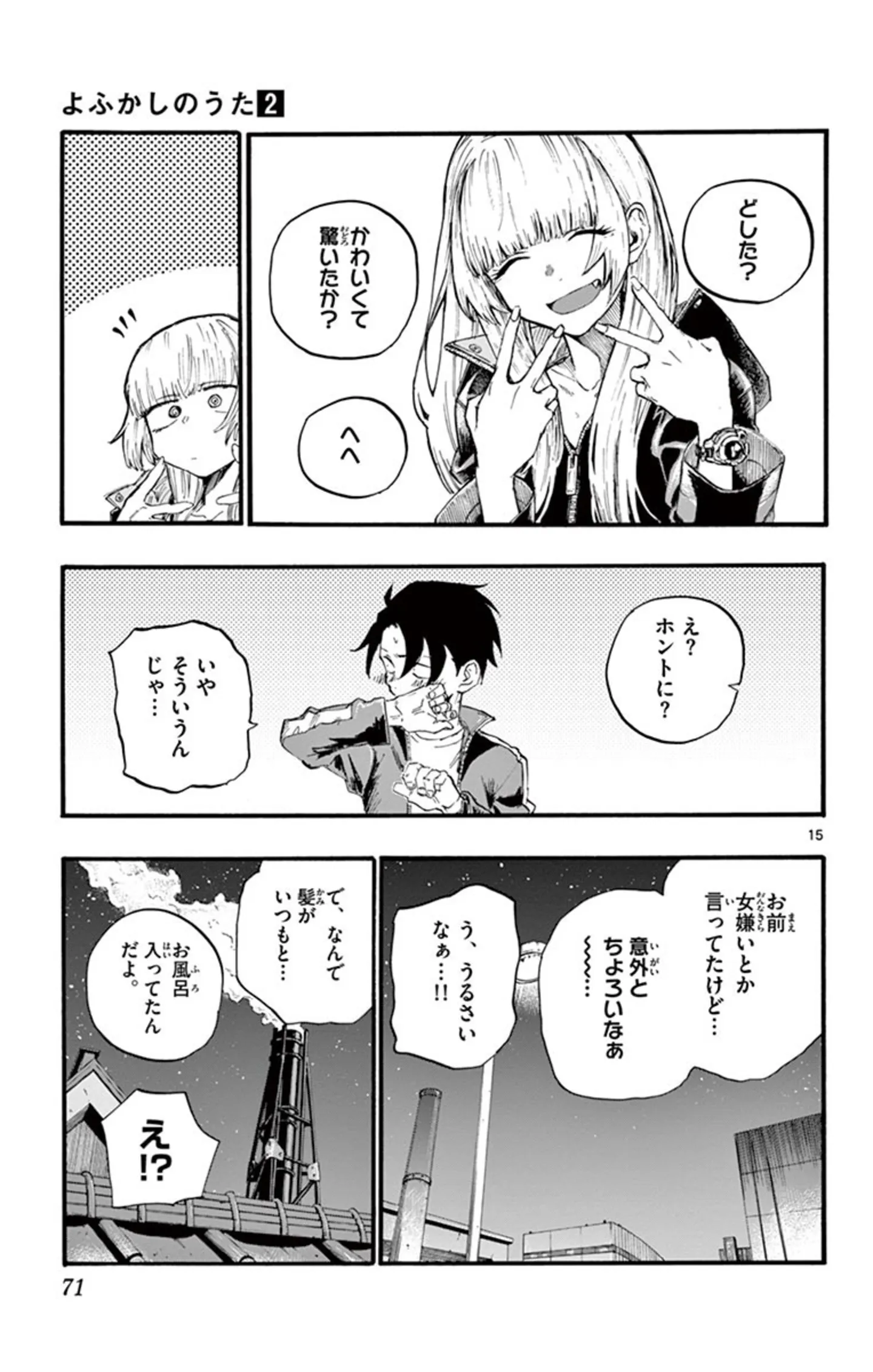 吸血鬼の夜は早い。夕方に目覚めてしまい、家にいるのに飽きた彼女が街に出てみると?/よふかしのうた⑬ マンガ 公開日:2025/10/12 この連載を最初から読む→ <第14回に続く> 本作品をAmazon(電子)で読む > 本作品をRenta!で読む > 本作品をebookjapanで読む > 本作品をBOOK☆WALKERで読む > « 1 2 3 4 あわせて読みたい 【本書のレビュー記事を見る】夜の街を彷徨う不眠少年と、そこで出会った美少女吸血鬼。ふたりの恋の行方は? あなたの夜更かしがさらに捗るボーイミーツガール『よふかしのうた』【書評】 【漫画】『よふかしのうた』を第1回から読む 【漫画】『うちの上司は見た目がいい』を読む 最新マンガと話題の書籍を無料で試し読み! 前の回 一覧 人気の連載 次の回 よふかしのうた(1) (少年サンデーコミックス) Amazon(電子) Amazon 楽天(電子) Renta! ebookjapan ブックライブ コミックシーモア DMMブックス U-NEXT よふかしのうた(20) (少年サンデーコミックス) Amazon(電子) Amazon 楽天(電子) Renta! ebookjapan ブックライブ コミックシーモア DMMブックス U-NEXT