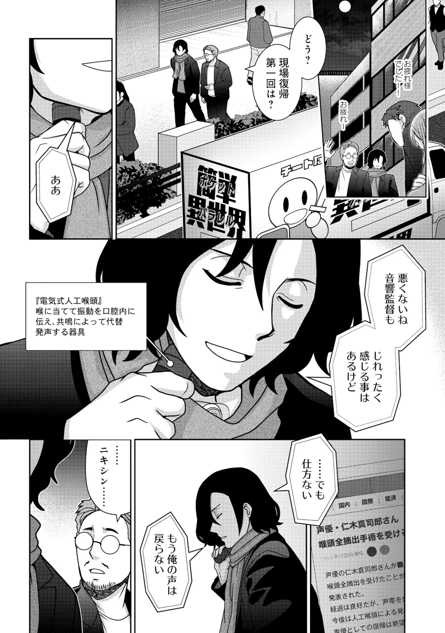 病気で声を失った人気声優。音響監督として新たな活躍の場を見つけるが…/転生声優は異世界すべてを魅了する① マンガ 公開日:2025/9/29 本作品をAmazon(電子)で読む > 本作品をRenta!で読む > >> 次のページに続く « 1 2 3 > あわせて読みたい 【漫画】『転生声優は異世界すべてを魅了する』を読む 【漫画】『放置子の面倒を見るのは誰ですか?』を読む 【漫画】『ふつつかな悪女ではございますが』を読む 最新マンガと話題の書籍を無料で試し読み! 前の回 一覧 人気の連載 次の回 転生声優は異世界すべてを魅了する(1)【電子限定特典ペーパー付き】 (RCユニコーン) Amazon(電子) Amazon 楽天(電子) Renta! DMMブックス