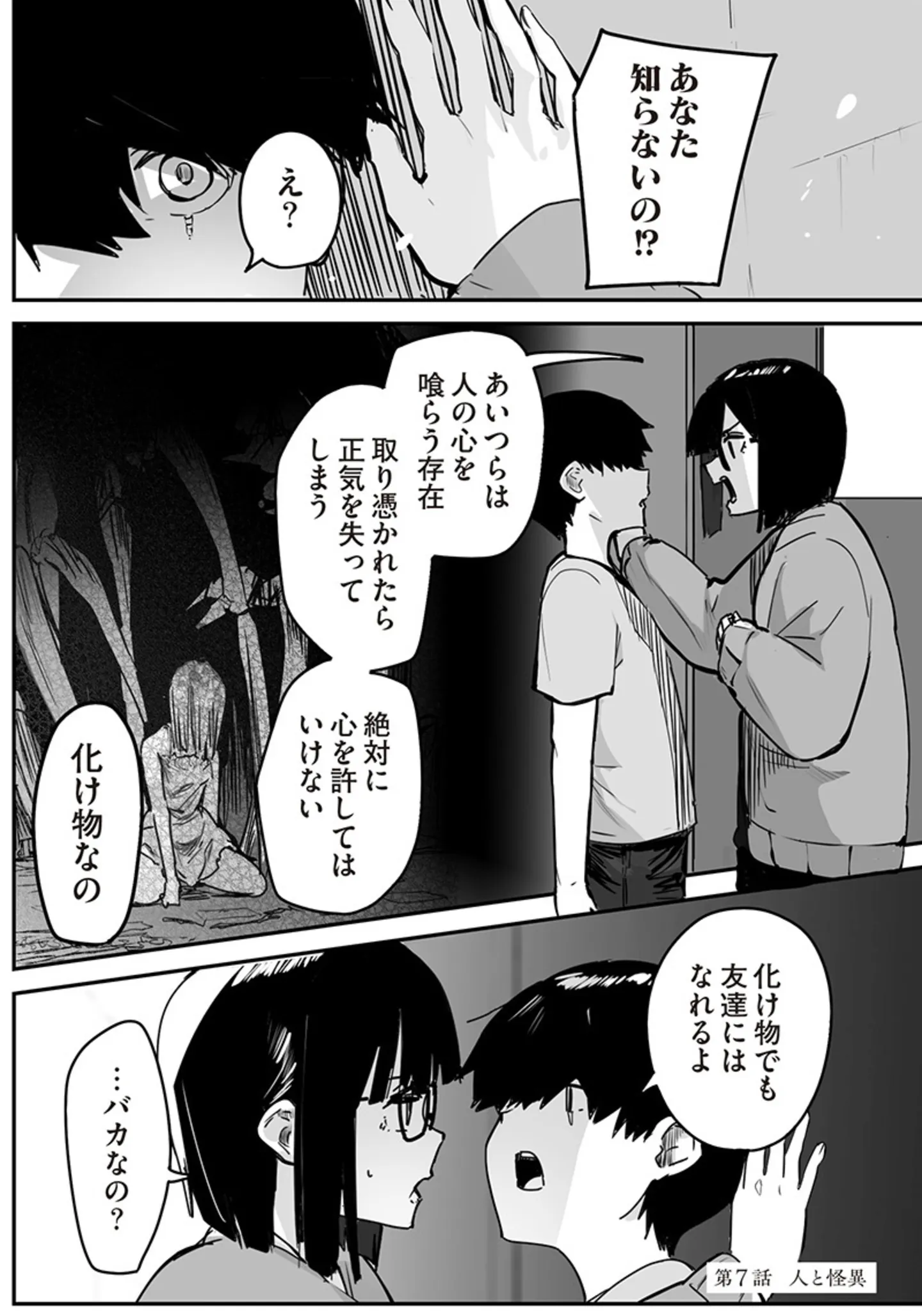 怪異を敵視する上級生。怪異と親しくする少年に早く離れるよう忠告するが…/怪異さんと俺⑧ マンガ 公開日:2025/10/2 この連載を最初から読む→ <第9回に続く> 本作品をAmazon(電子)で読む > 本作品をRenta!で読む > 本作品をebookjapanで読む > 本作品をBOOK☆WALKERで読む > « 1 2 あわせて読みたい 【漫画】『怪異さんと俺』を第1回から読む 【漫画】『勤労ロードショー 今日も財布がさみしくて』を読む 【漫画】『不安の種』を読む 人気のホラー作品を無料で試し読み! 前の回 一覧 人気の連載 次の回 怪異さんと俺 (コミックエッセイ) Amazon(電子) Amazon 楽天(電子) Renta! ebookjapan ブックライブ コミックシーモア DMMブックス U-NEXT
