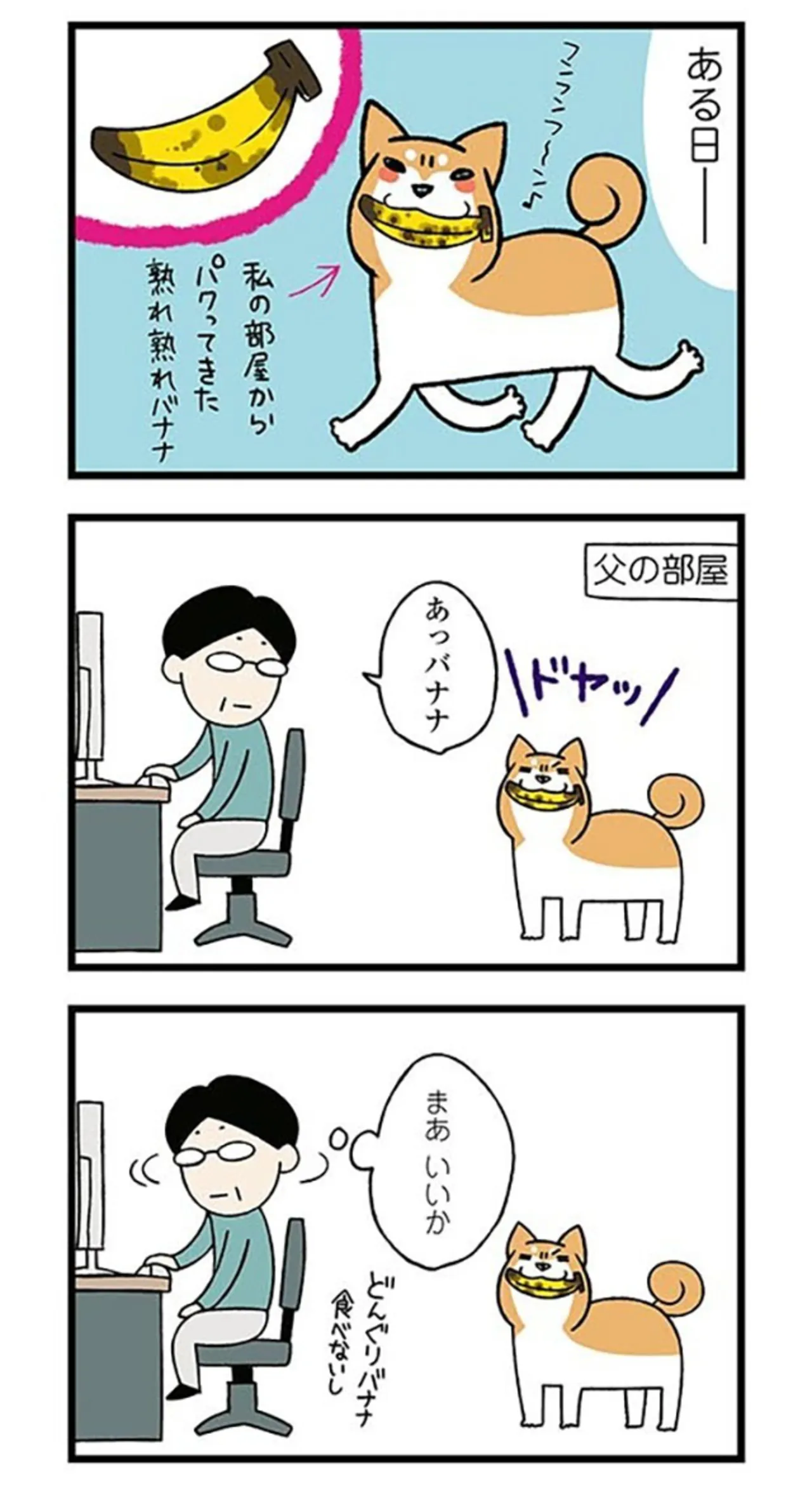 食べないはずのバナナをドヤ顔でくわえる柴犬。父の部屋へ向かったと思ったら事件発生!?/ドヤ顔柴犬どんぐり② マンガ 公開日:2025/10/2 この連載を最初から読む→ 本作品をAmazon(電子)で読む > 本作品をRenta!で読む > >> 次のページに続く « 1 2 3 4 > あわせて読みたい 【漫画】『ドヤ顔柴犬どんぐり』を第1回から読む 【漫画】『痔だと思ったら大腸がんステージ4でした 標準治療を旅と漫画で乗り越えてなんとか経過観察になるまで』を読む 【漫画】『黒猫ろんと暮らしたら』を読む 最新マンガと話題の書籍を無料で試し読み! 前の回 一覧 人気の連載 次の回 ドヤ顔柴犬どんぐり (コミックエッセイ) Amazon(電子) Amazon 楽天(電子) Renta! ebookjapan ブックライブ コミックシーモア DMMブックス U-NEXT ドヤ顔柴犬どんぐり2 (コミックエッセイ) Amazon(電子) Amazon 楽天(電子)