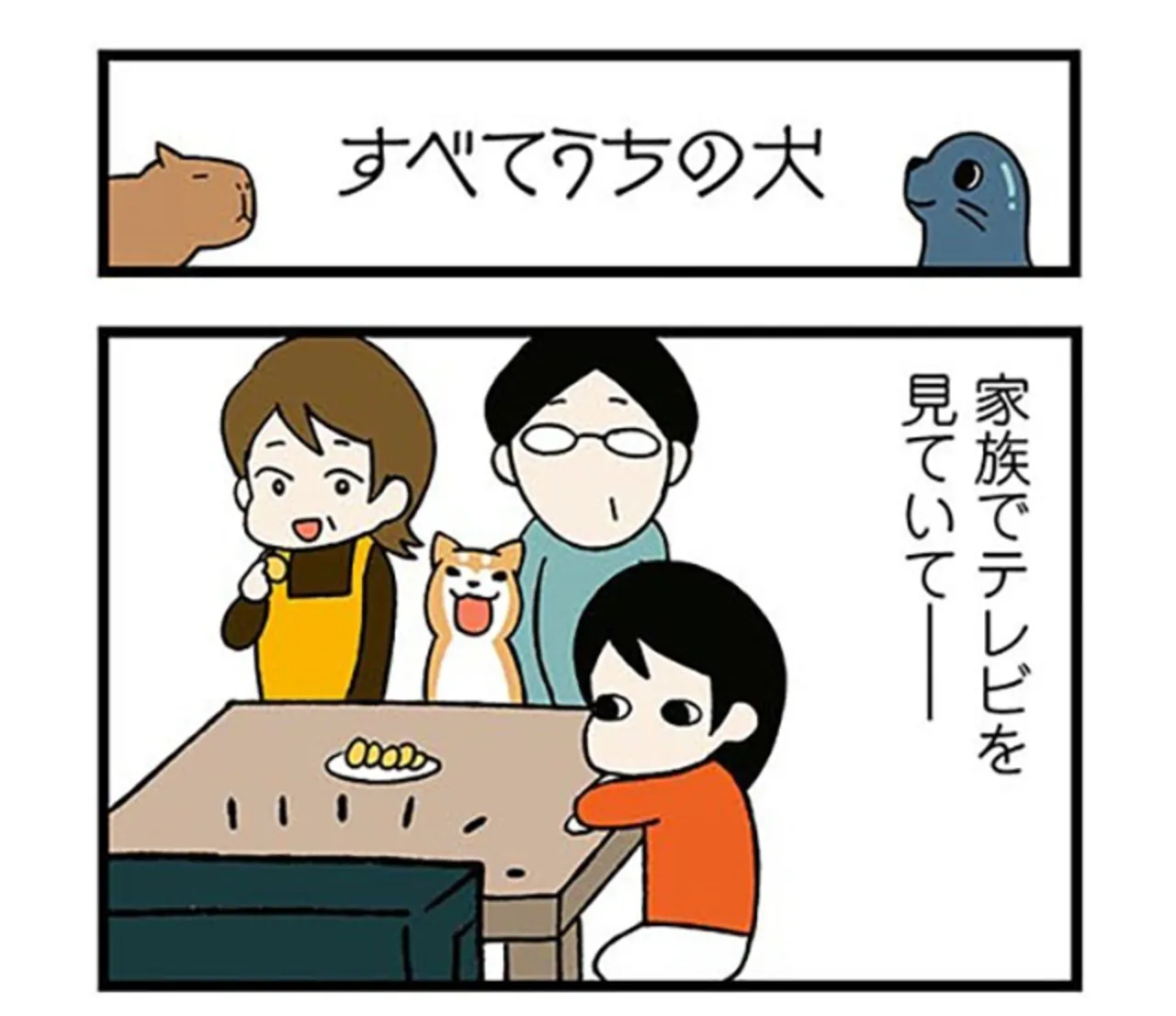 豚もカピバラも似ている!? テレビに動物が映ると、愛犬に似て見えて家族は大興奮/ドヤ顔柴犬どんぐり⑪ マンガ 公開日:2025/10/11 この連載を最初から読む→ 『ドヤ顔柴犬どんぐり』(宮路ひま/KADOKAWA)第11回【全24回】 おっとりしたお父さん、しっかり者のお母さん、そしてとにかく明るい柴犬のどんぐりと暮らす著者の宮路ひまさん。よくオスに間違えられるおっちゃん顔の愛犬・どんぐりは、おバカな個性派柴犬。鳴き声は「あわわわわわ…」決め顔は「ドヤ顔にやり」。そんなどんぐりと翻弄されっぱなしのひまさんが過ごす爆笑と胸キュンの日々! 木の実をボディプレスするのが趣味!? 冬に夏毛生やしちゃう…。そんなどんぐりと翻弄されっぱなしのひまさんが繰り広げる攻防戦を描いた『ドヤ顔柴犬どんぐり』(1~2巻)を、ご好評につき再連載いたします。 【30日間無料】Amazonの読み放題をチェック > 本作品をAmazon(電子)で読む > 本作品をRenta!で読む > >> 次のページに続く 1 2 3 > あわせて読みたい 【漫画】『ドヤ顔柴犬どんぐり』を第1回から読む 【漫画】『離婚リセット 妻から別れを切り出された夫』を読む 【漫画】『うちのトイプーがアイドルすぎる。』を読む 最新マンガと話題の書籍を無料で試し読み! 前の回 一覧 人気の連載 次の回 ドヤ顔柴犬どんぐり (コミックエッセイ) Amazon(電子) Amazon 楽天(電子) Renta! ebookjapan ブックライブ コミックシーモア DMMブックス U-NEXT ドヤ顔柴犬どんぐり2 (コミックエッセイ) Amazon(電子) Amazon 楽天(電子)