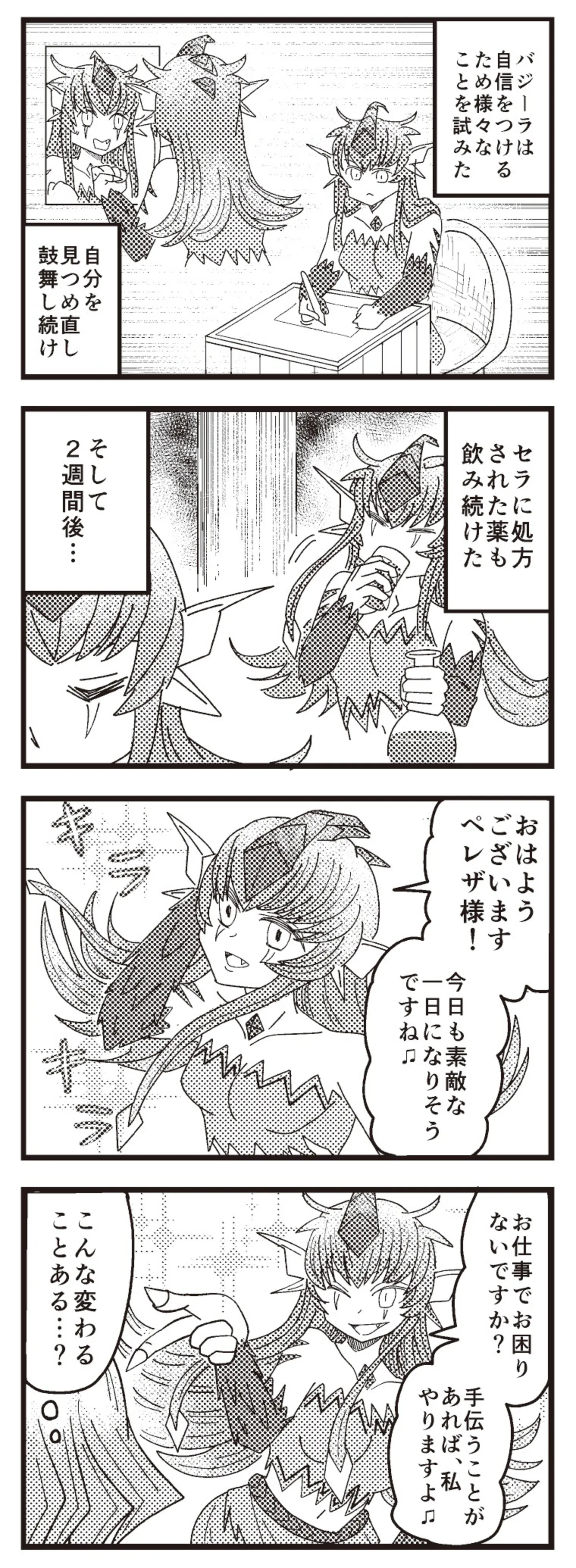 自己肯定感を上げたい後輩を医者のところへ連れて行くと、あるものを渡される/魔王軍はホワイト企業3㉘ マンガ 公開日:2025/10/10 この連載を最初から読む→ 自己肯定感の低いバジリスク⑤ 自己肯定感の低いバジリスク⑥ 自己肯定感の低いバジリスク⑦ <第29回に続く> 本作品をAmazonで読む > 本作品をRenta!で読む > 本作品をebookjapanで読む > 本作品をBOOK☆WALKERで読む > « 1 2 あわせて読みたい 【漫画】『魔王軍はホワイト企業』を第1回から読む 「お前ら何年戦うんだよ!!」勤続300年の聖剣が激務に耐えかねて、向かった先は… 働き方がホワイトすぎる“魔王軍”!? 【漫画】『娘を妊娠させたのは誰ですか?』を読む 【漫画】『ギャル医者あやっぺ』を読む 最新マンガと話題の書籍を無料で試し読み! 前の回 一覧 人気の連載 次の回 魔王軍はホワイト企業 Amazon(電子) Amazon 楽天(電子) Renta! ebookjapan ブックライブ コミックシーモア DMMブックス U-NEXT 魔王軍はホワイト企業 2 Amazon(電子) Amazon 楽天(電子) 魔王軍はホワイト企業 3 Amazon(電子) Amazon 楽天(電子)