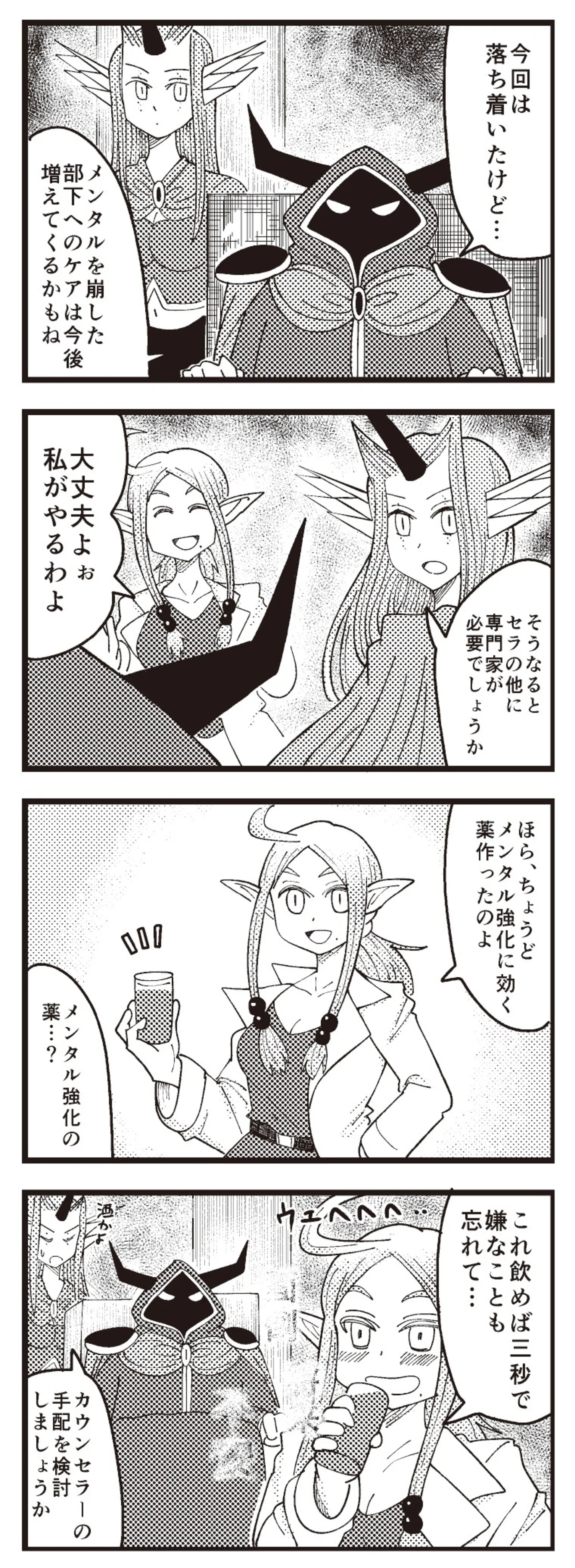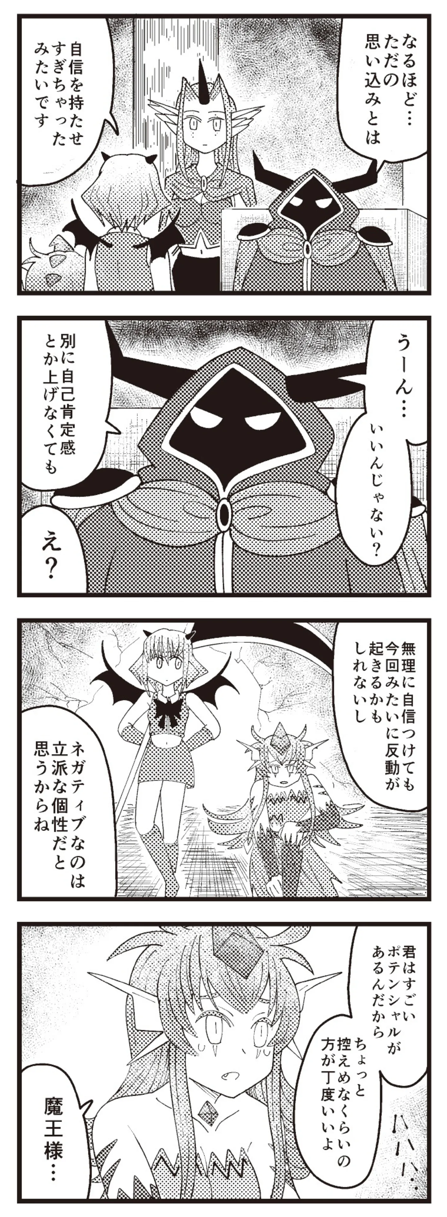 ネガティブなのも立派な個性。思い込みの激しいバジリスクの娘に魔王からアドバイス/魔王軍はホワイト企業3㉚ マンガ 公開日:2025/10/12 この連載を最初から読む→ 自己肯定感の低いバジリスク⑬ 自己肯定感の低いバジリスク⑭ 自己肯定感の低いバジリスク 余談 <第31回に続く> 本作品をAmazonで読む > 本作品をRenta!で読む > 本作品をebookjapanで読む > 本作品をBOOK☆WALKERで読む > « 1 2 あわせて読みたい 【漫画】『魔王軍はホワイト企業』を第1回から読む 「お前ら何年戦うんだよ!!」勤続300年の聖剣が激務に耐えかねて、向かった先は… 働き方がホワイトすぎる“魔王軍”!? 【漫画】『グランプリは私ですけど何か?~自己肯定モンスターのミスコン無双~』を読む 【漫画】『理系の人々』を読む 最新マンガと話題の書籍を無料で試し読み! 前の回 一覧 人気の連載 次の回 魔王軍はホワイト企業 Amazon(電子) Amazon 楽天(電子) Renta! ebookjapan ブックライブ コミックシーモア DMMブックス U-NEXT 魔王軍はホワイト企業 2 Amazon(電子) Amazon 楽天(電子) 魔王軍はホワイト企業 3 Amazon(電子) Amazon 楽天(電子)