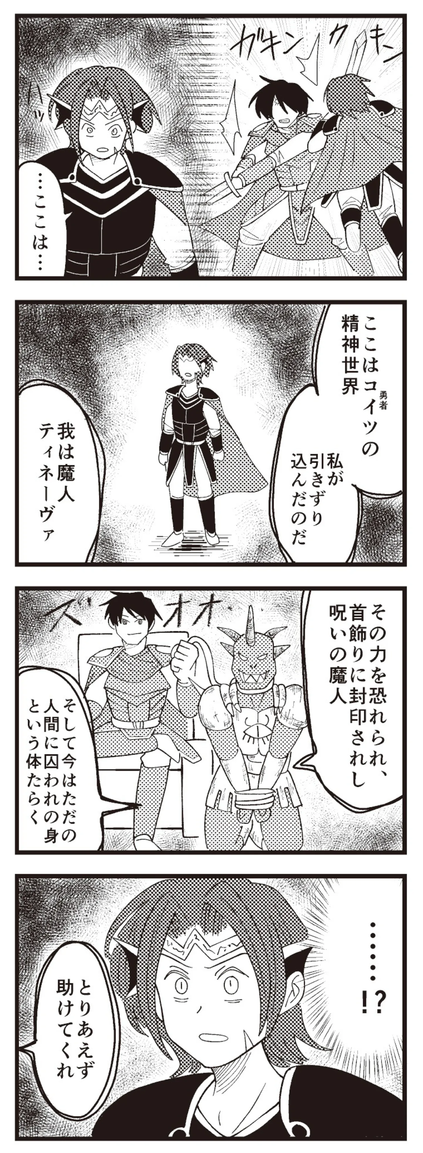 呪いを解くために戦っていると勇者の精神世界に迷い込む。助けを求めてきたのは…!?/魔王軍はホワイト企業3㉞ マンガ 公開日:2025/10/16 この連載を最初から読む→ 勇者と呪いの力⑬ 勇者と呪いの力⑭ 勇者と呪いの力⑮ <続きは本書でお楽しみください> 本作品をAmazonで読む > 本作品をRenta!で読む > 本作品をebookjapanで読む > 本作品をBOOK☆WALKERで読む > « 1 2 あわせて読みたい 【漫画】『魔王軍はホワイト企業』を第1回から読む 「お前ら何年戦うんだよ!!」勤続300年の聖剣が激務に耐えかねて、向かった先は… 働き方がホワイトすぎる“魔王軍”!? 【漫画】『きょうだい、だけどいや ケアをさせられたきょうだい児だった、けど』を読む 【漫画】『じいさんばあさん若返る』を読む 最新マンガと話題の書籍を無料で試し読み! 前の回 一覧 人気の連載 次の回 魔王軍はホワイト企業 試し読み *電子書籍ストアBOOK☆WALKERへ移動します 魔王軍はホワイト企業 2 試し読み *電子書籍ストアBOOK☆WALKERへ移動します 魔王軍はホワイト企業 3 試し読み *電子書籍ストアBOOK☆WALKERへ移動します